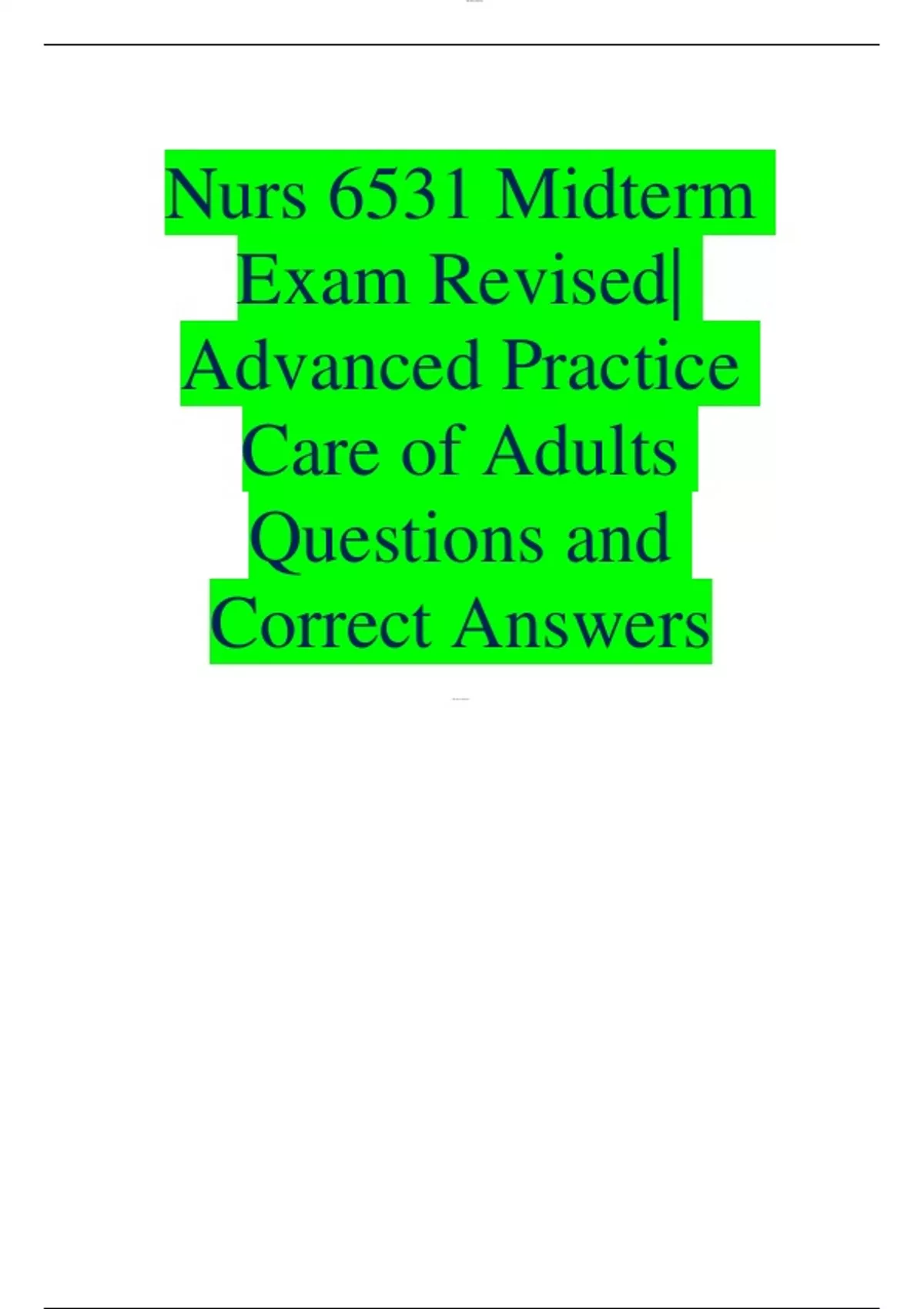 Nurs 6531 Midterm Exam Revised| Advanced Practice Care of Adults Questions and Correct Answers