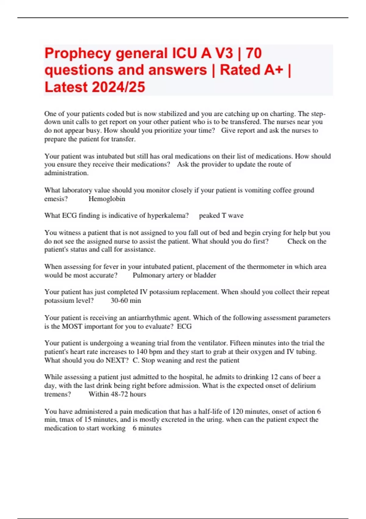 Prophecy general ICU A V3 | 70 questions and answers | Rated A+ | Latest 2024/25