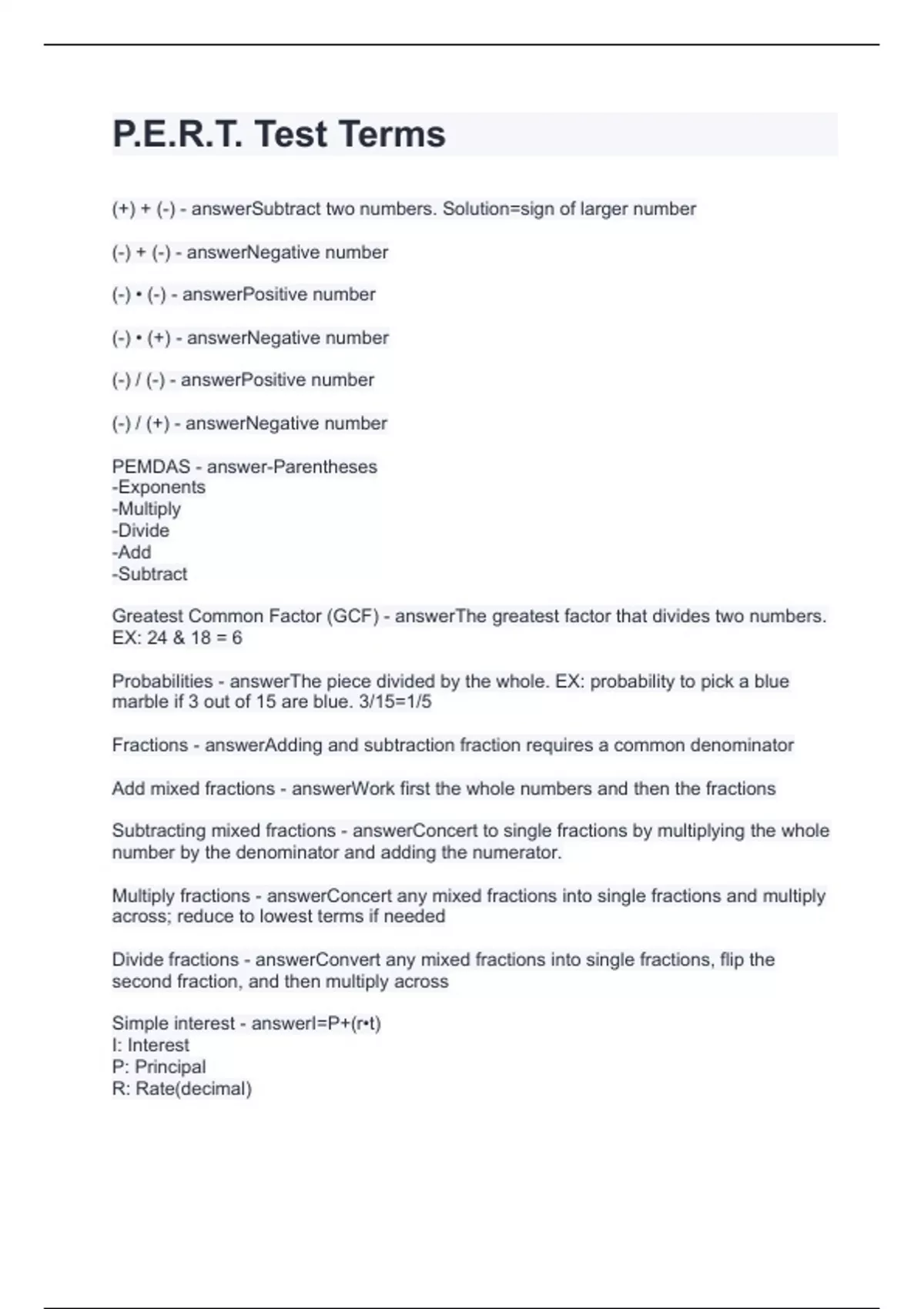 Greatest Common Factor (GCF) - answerThe greatest factor that divides two numbers. EX: 24 & 18 = 6