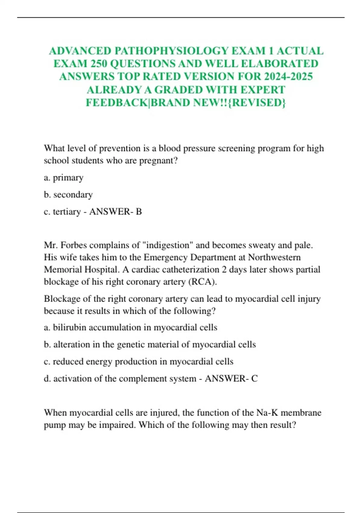 ADVANCED PATHOPHYSIOLOGY EXAM 1 ACTUAL EXAM 250 QUESTIONS AND WELL ELABORATED ANSWERS TOP RATED VERSION FOR ALREADY A GRADED WITH EXPERT FEEDBACK|BRAND NEW!!{REVISED}