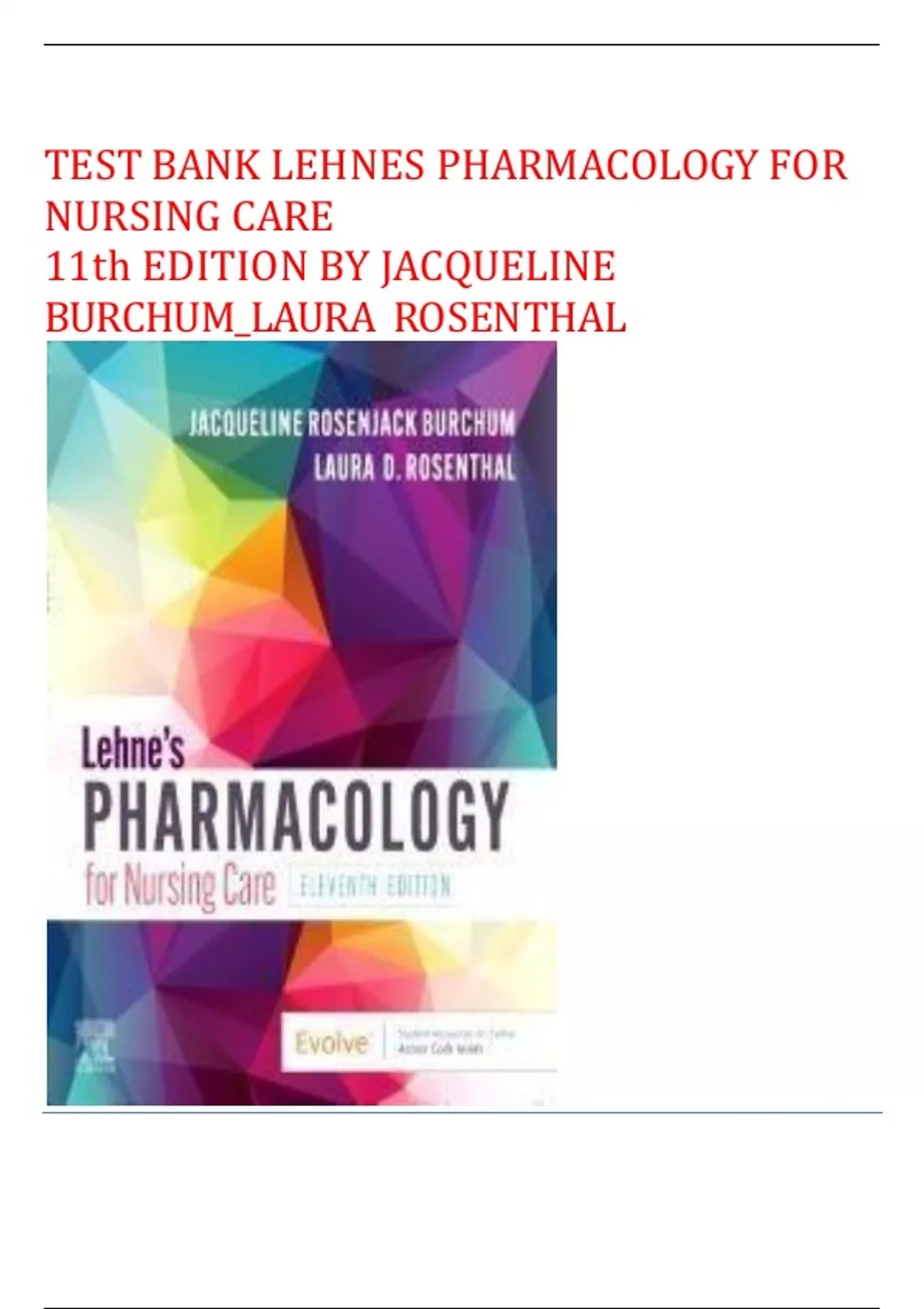TEST BANK LEHNES PHARMACOLOGY FOR NURSING CARE 11th EDITION BY JACQUELINE BURCHUM_LAURA ROSENTHAL