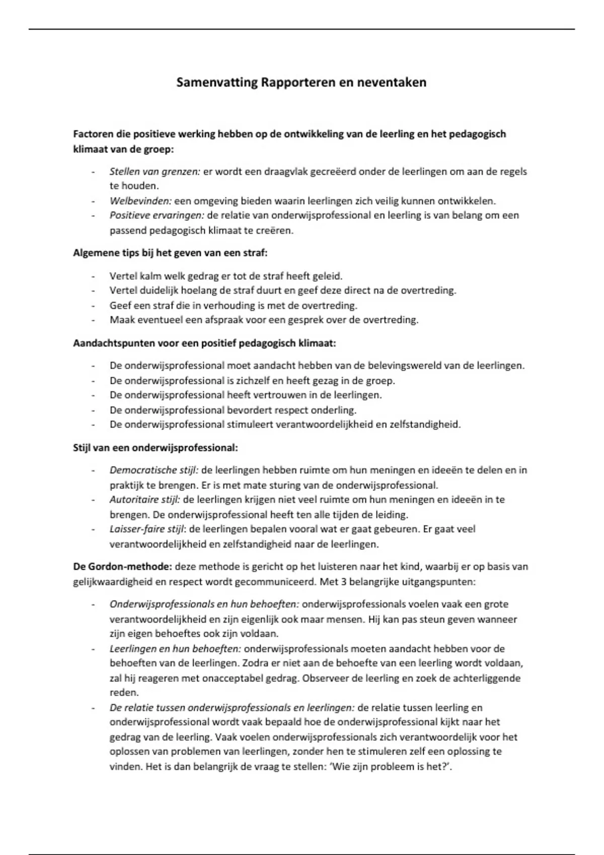- Autoritaire stijl: de leerlingen krijgen niet veel ruimte om hun meningen en ideeën in te