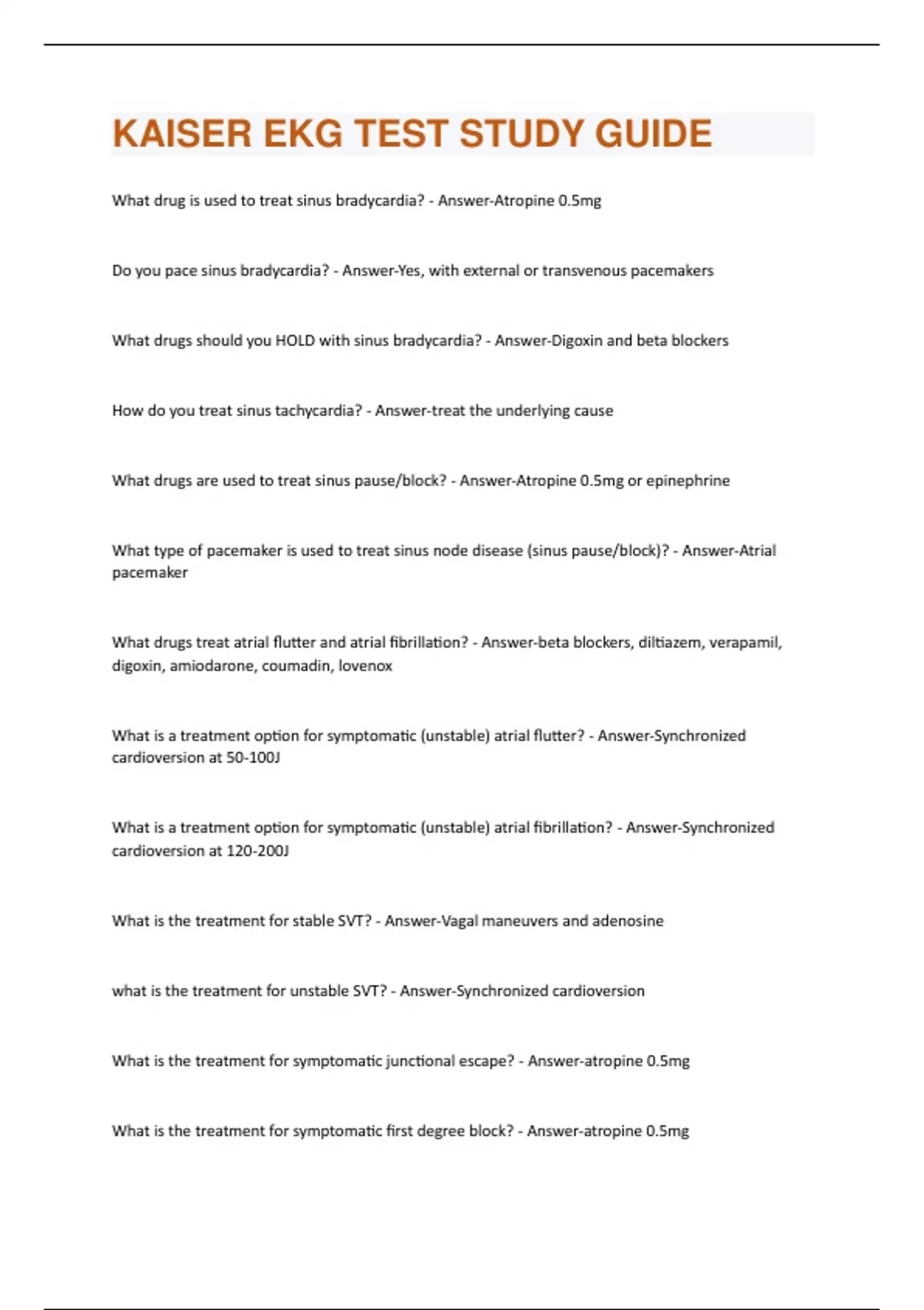 KAISER EKG TEST STUDY GUIDE GRADED A+