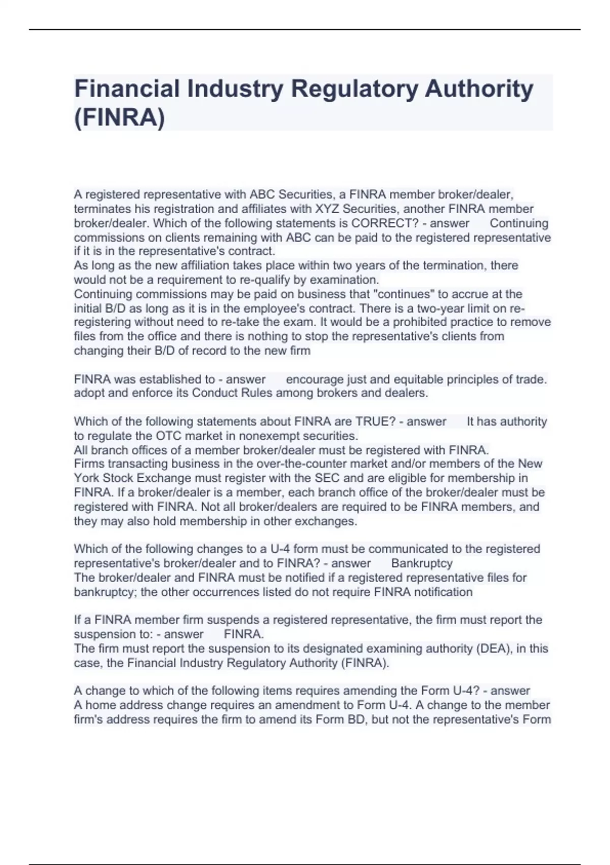 Financial Industry Regulatory Authorit1 Questions with solutions 2024