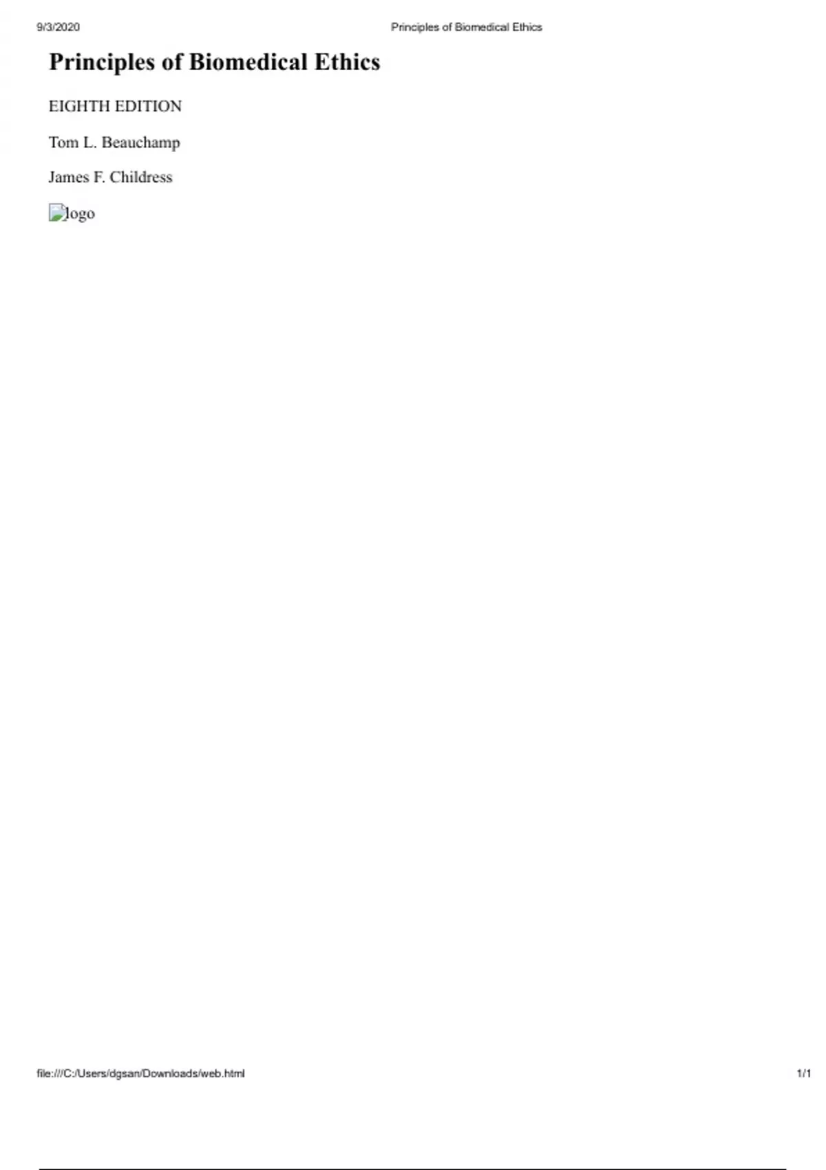, 9/3/2020 Principles of Biomedical Ethics