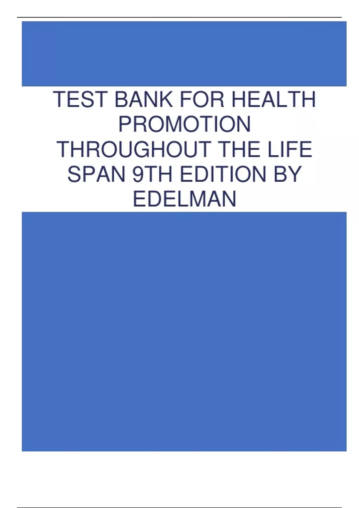 TEST BANK FOR HEALTH PROMOTION THROUGHOUT THE LIFE SPAN 9TH EDITION BY EDELMAN