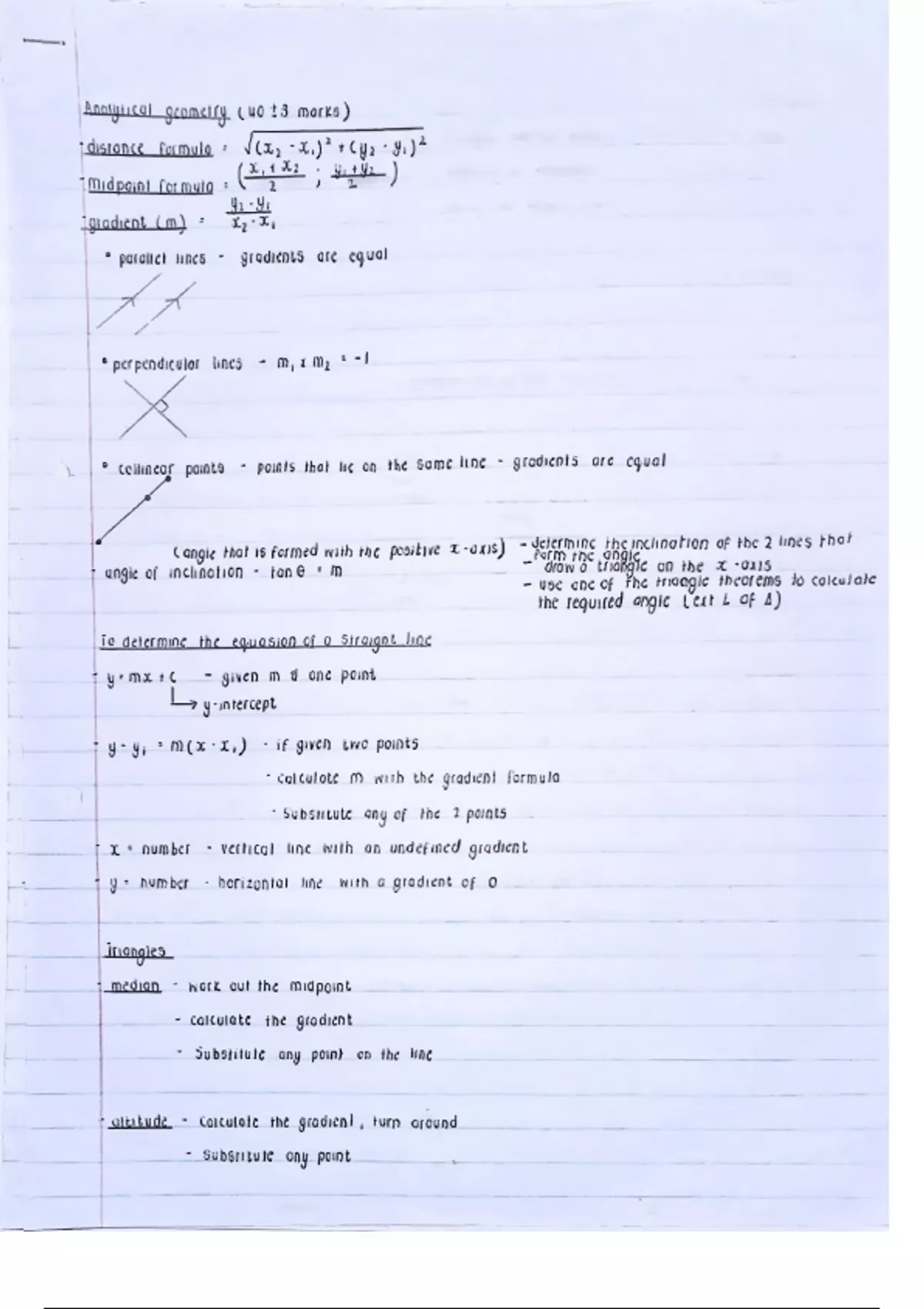 Summary Analytical geometry grade 12 IEB