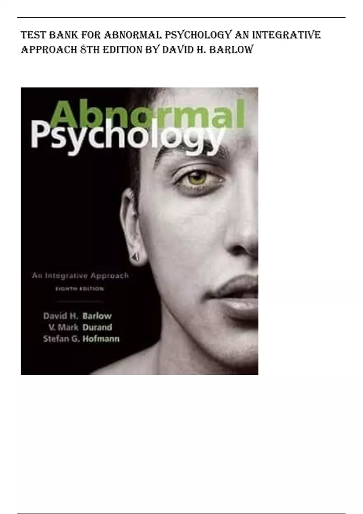 Test Bank for Abnormal Psychology An Integrative Approach 8th Edition By David H. Barlow