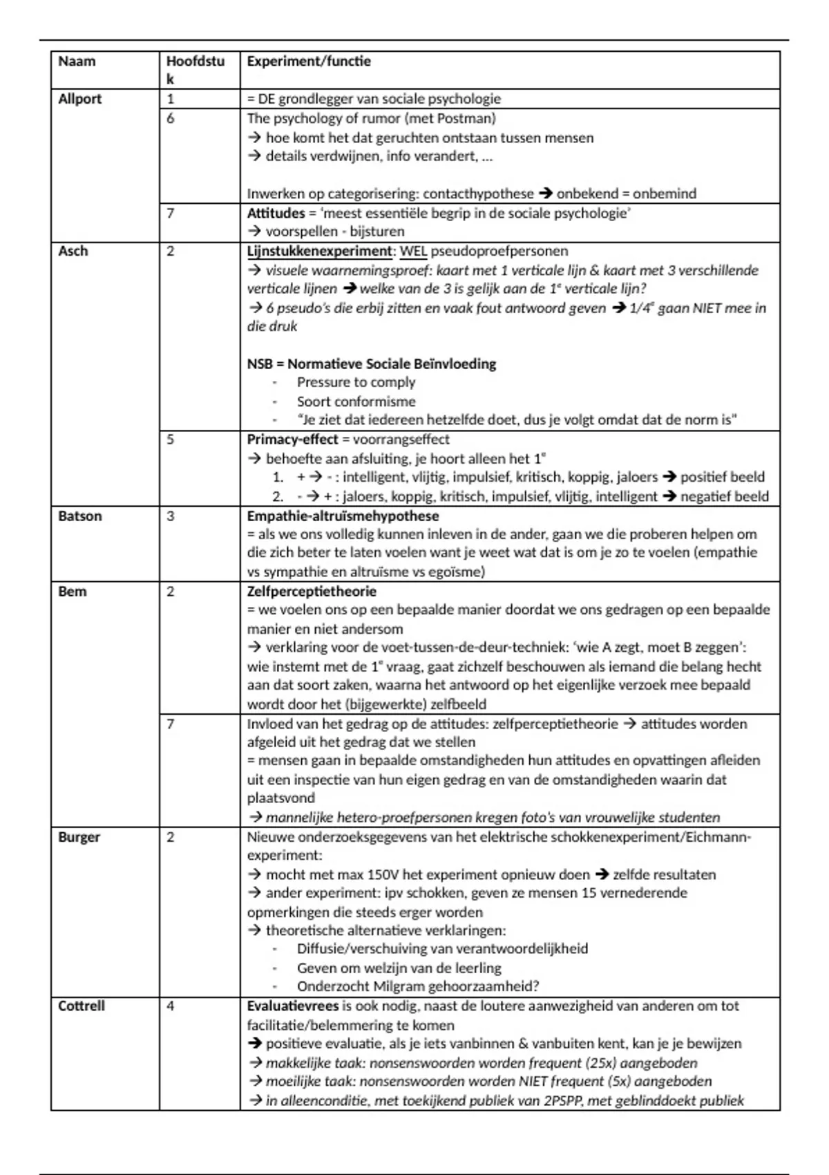 Samenvatting Overzicht te kennen wetenschappers + hun experiment/functie