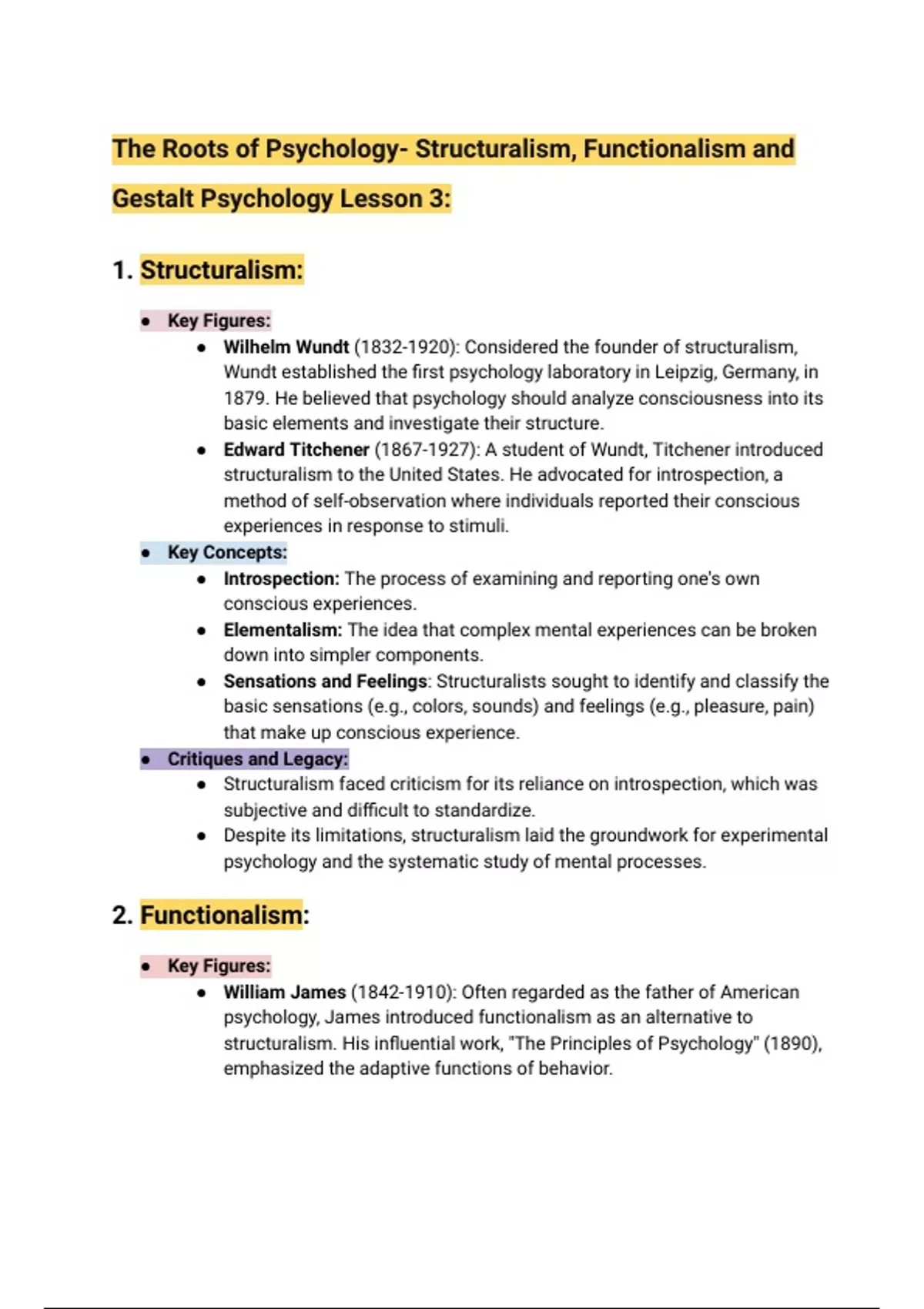 The Roots of Psychology- Structuralism, Functionalism and Gestalt Psychology Lesson 3: