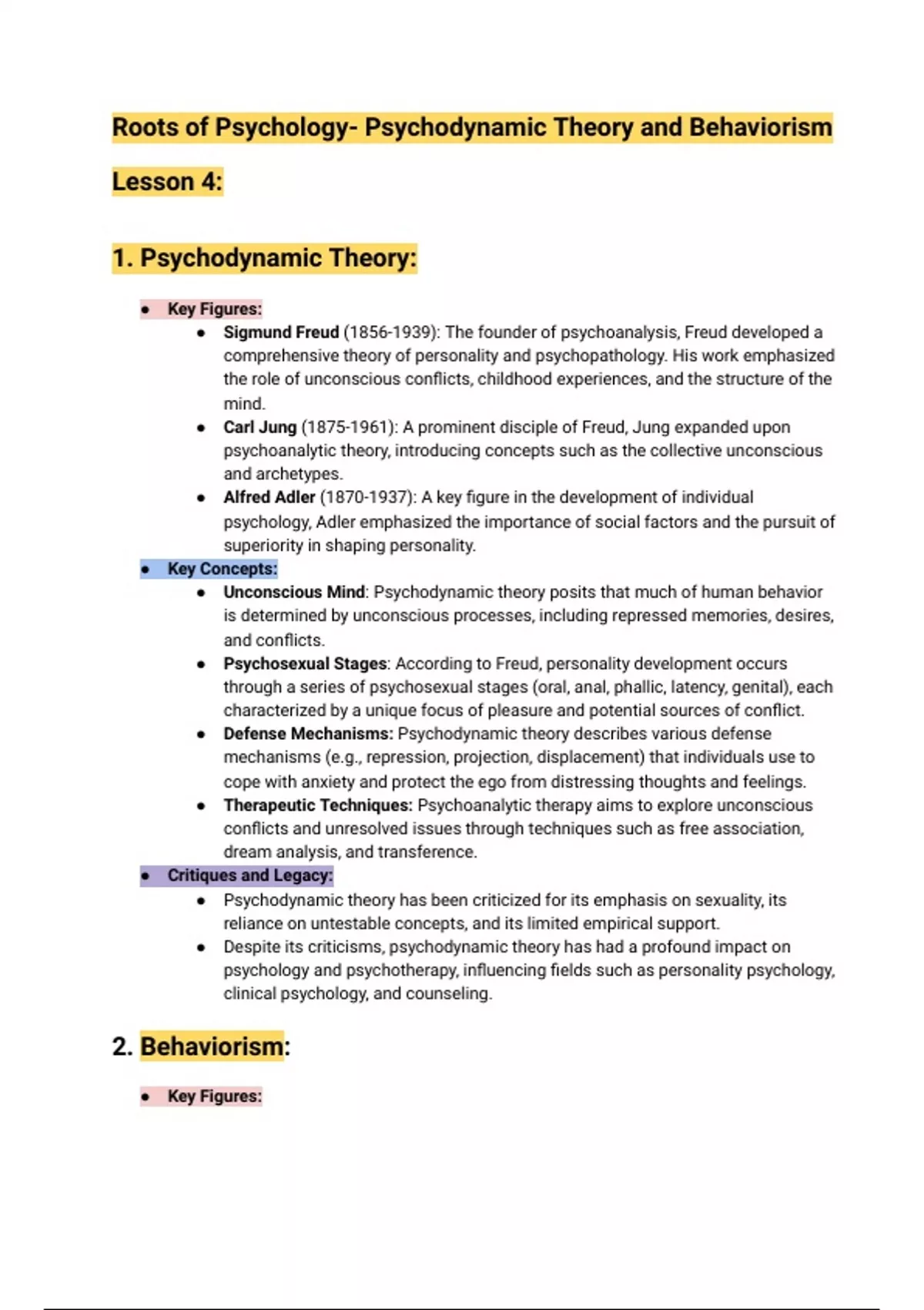 Roots of Psychology- Psychodynamic Theory and Behaviorism Lesson 4: