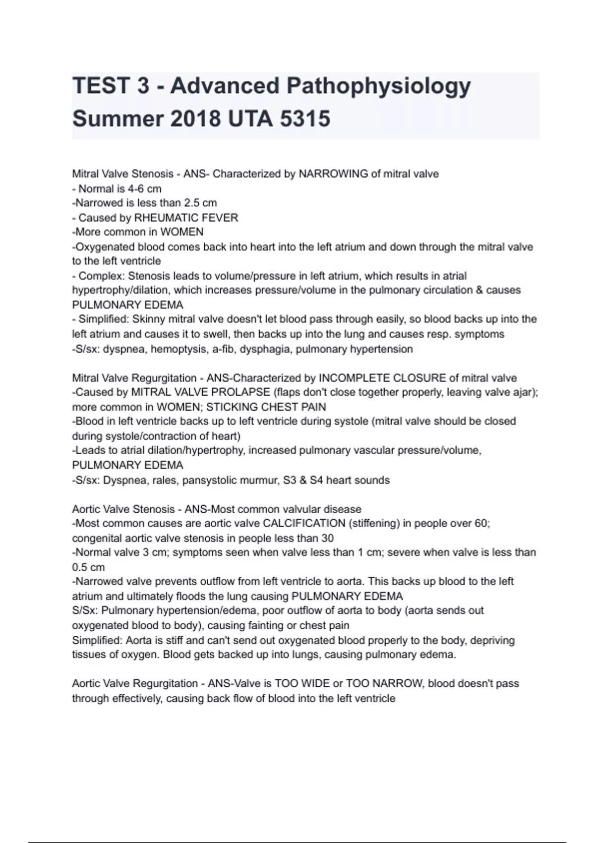 TEST 3 - Advanced Pathophysiology Summer 2024/2025 UTA 5315 already graded A+