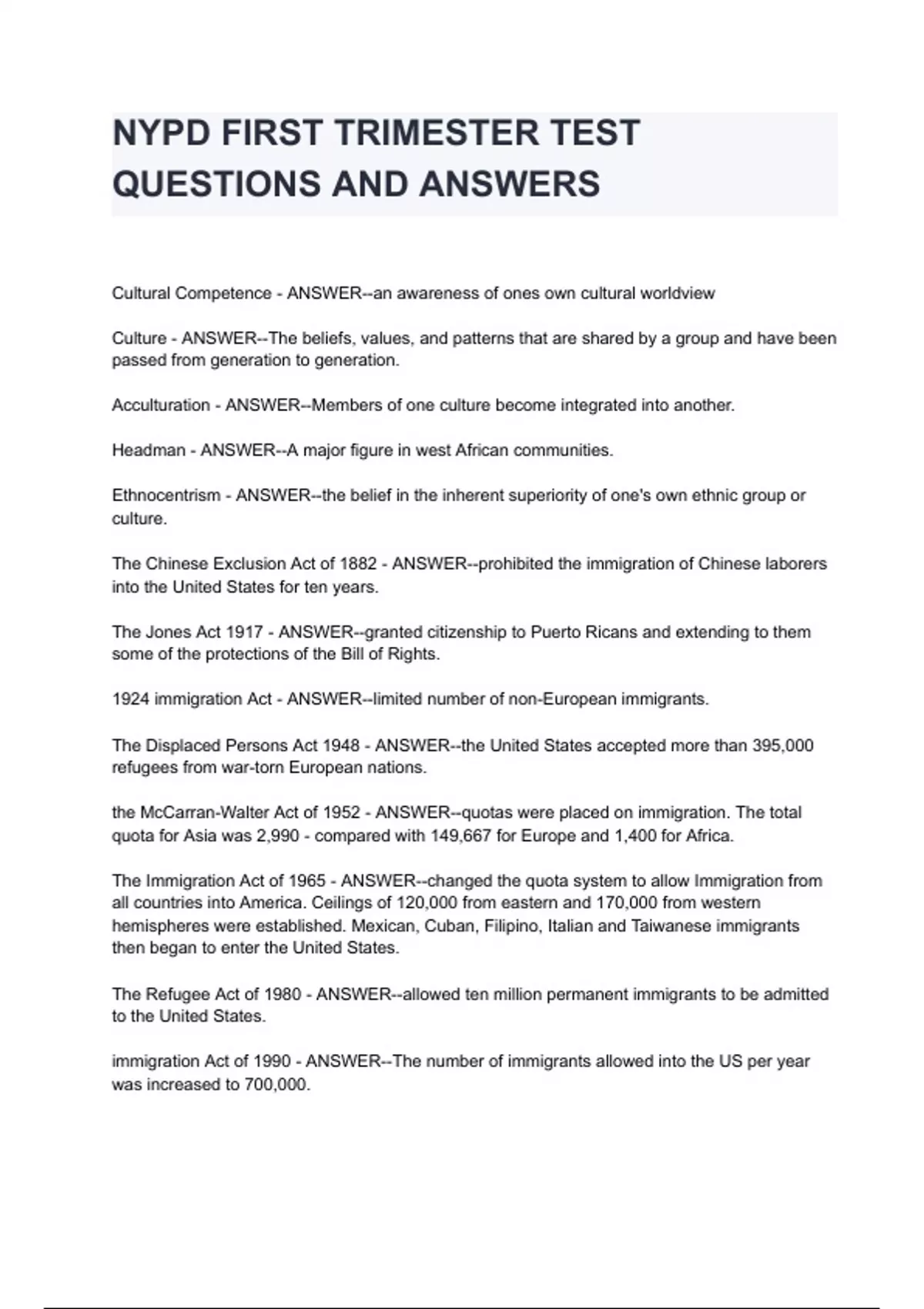 - NYPD FIRST TRIMESTER TET QUESTIOS AND ANSERS