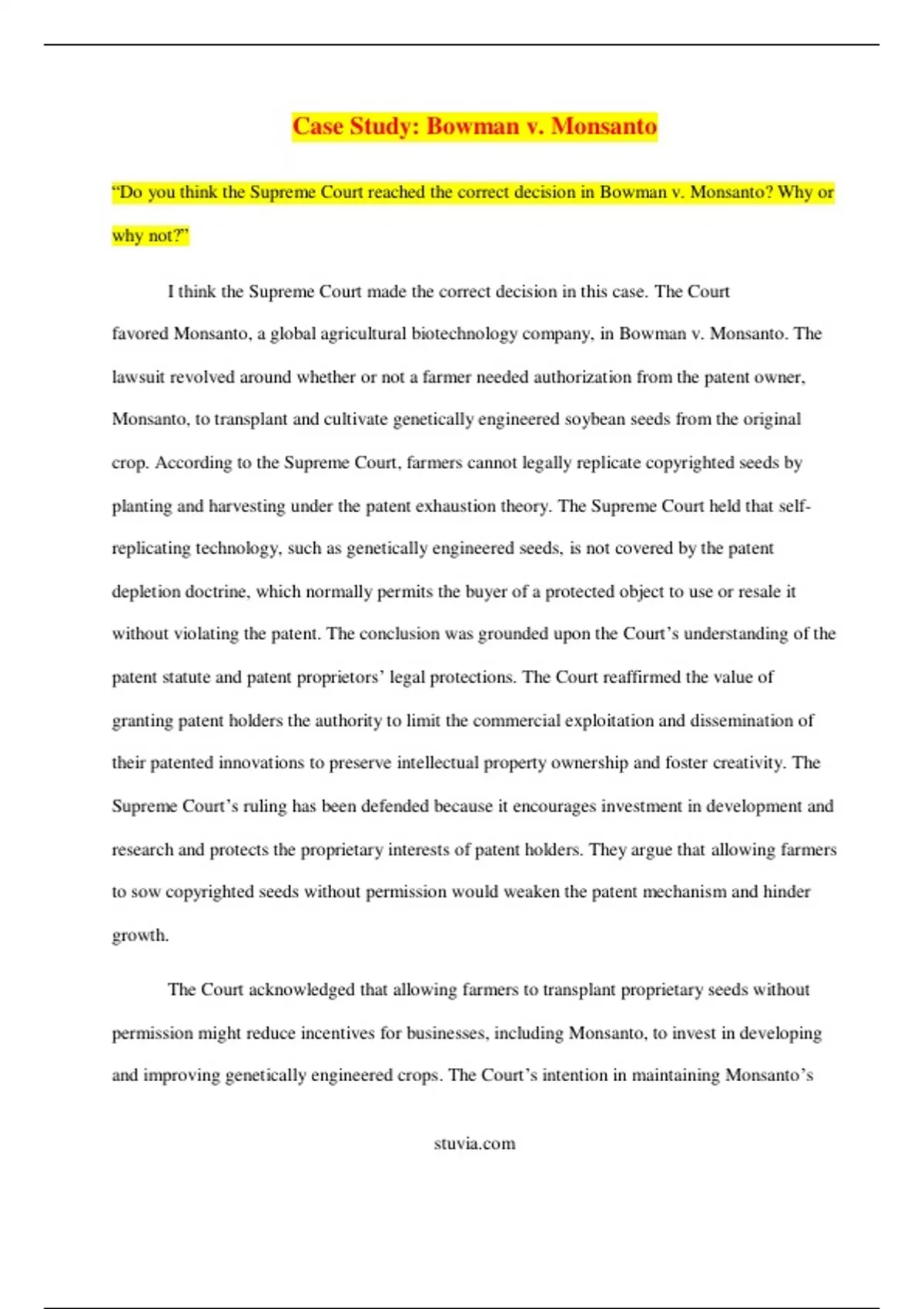 “Do you think the Supreme Court reached the correct decision in Bowman v. Monsanto? Why or why not?”“Do you think the Supreme Court reached the correct decision in Bowman v. Monsanto? Why or why not?”“Do you think the Supreme Court reached the correct decision in Bowman v. Monsanto? Why or why not?”“Do you think the Supreme Court reached the correct decision in Bowman v. Monsanto? Why or why not?”“Do you think the Supreme Court reached the correct decision in Bowman v. Monsanto? Why or why not?”