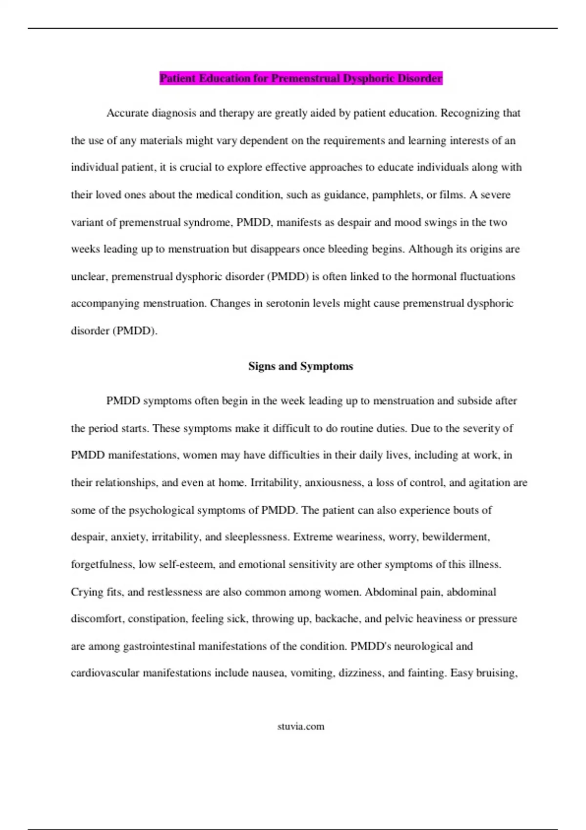 Summary Patient Education for Premenstrual Dysphoric Disorder