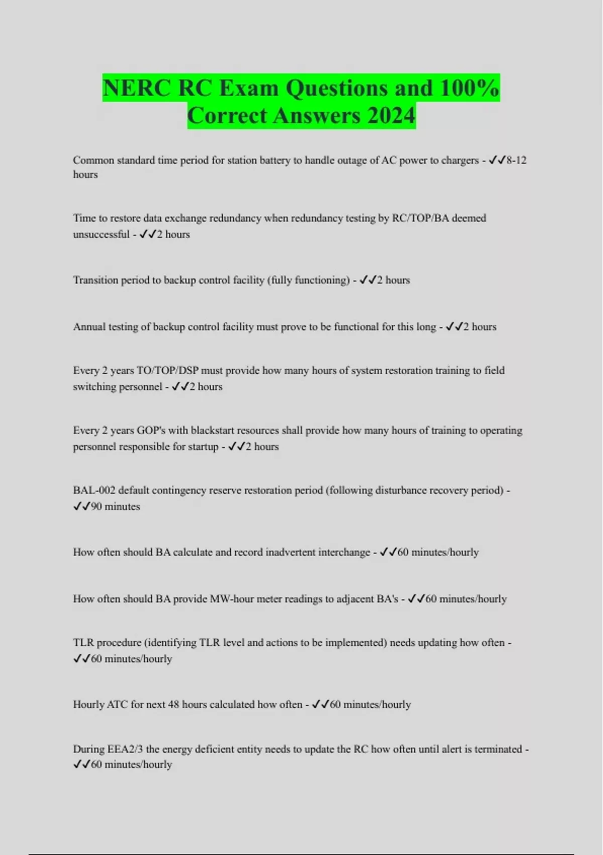 NERC RC Exam Questions and 100% Correct Answers 2024