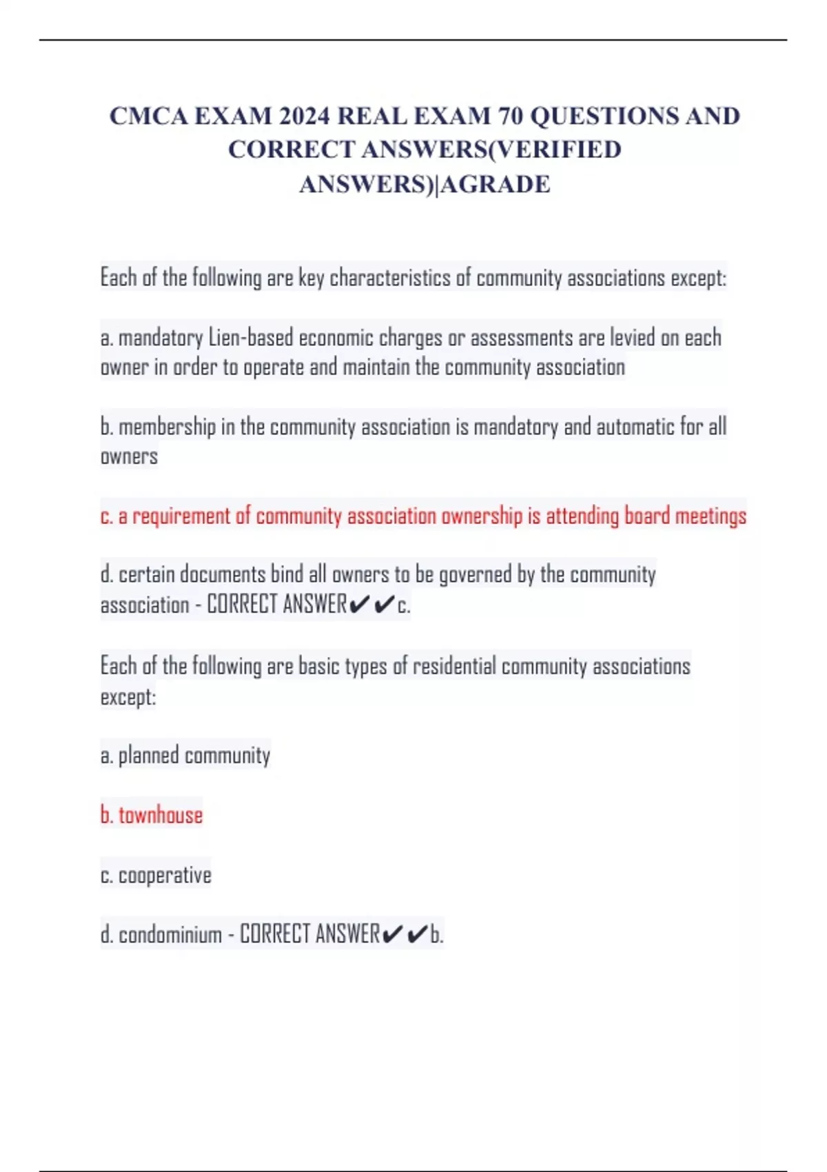 CMCA EXAM 2024 REAL EXAM 70 QUESTIONS AND CORRECT ANSWERS(VERIFIED ANSWERS)|AGRADE