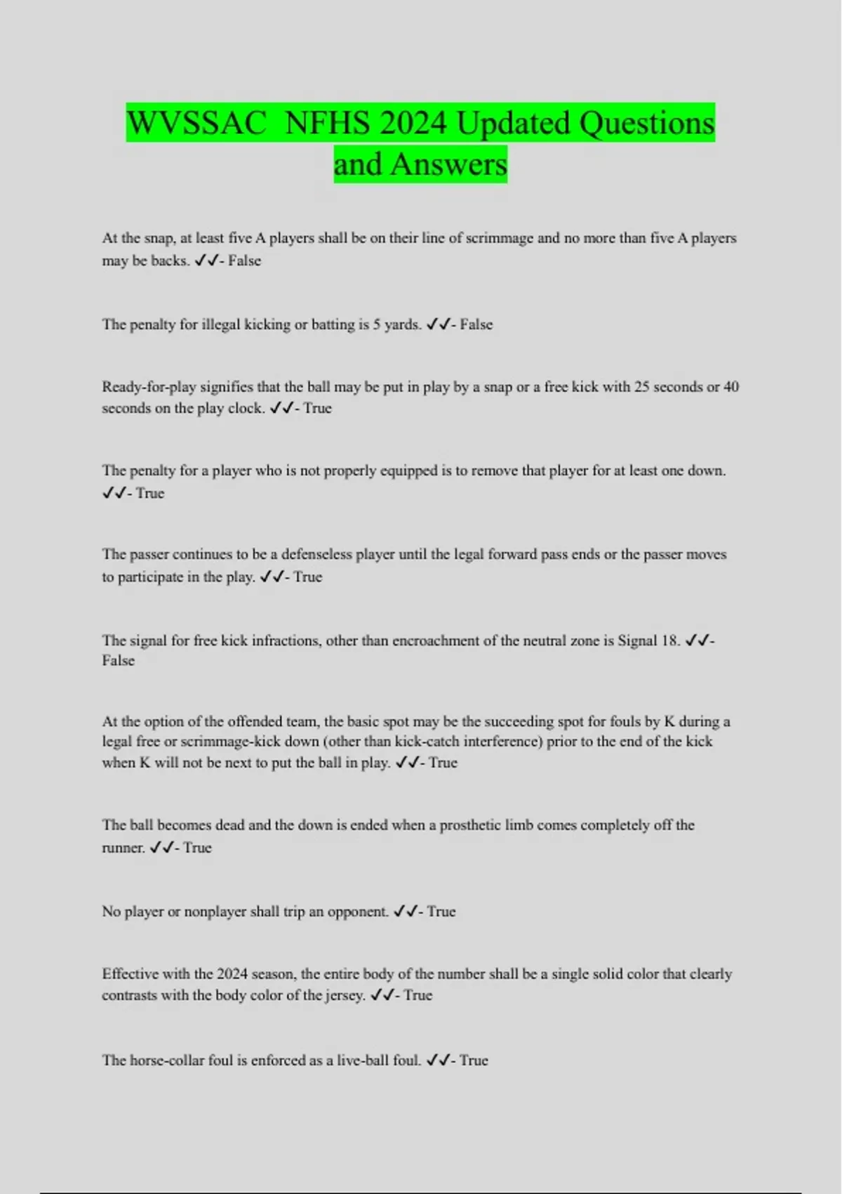 WVSSAC NFHS 2024 Updated Questions and Answers