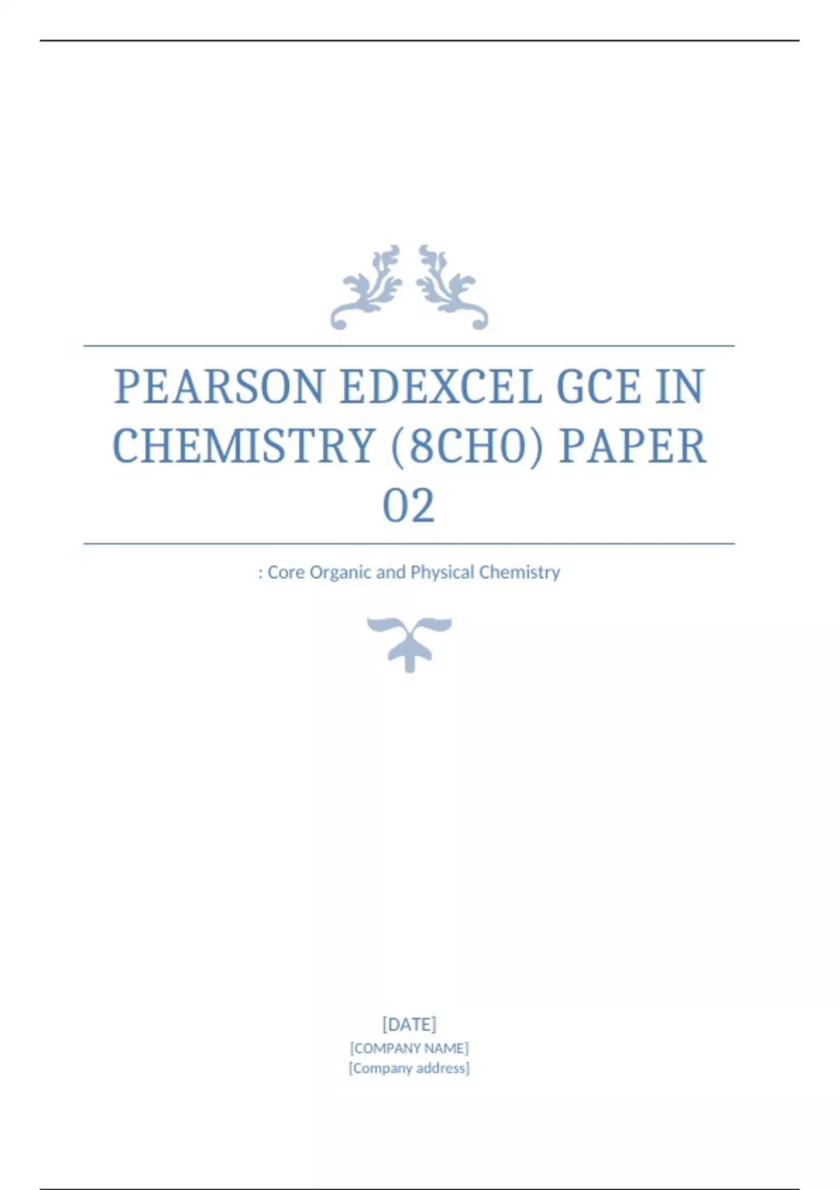 PEARSON EDEXCEL GCE IN CHEMISTRY (8CH0) PAPER 02 : Core Organic and Physical Chemistry