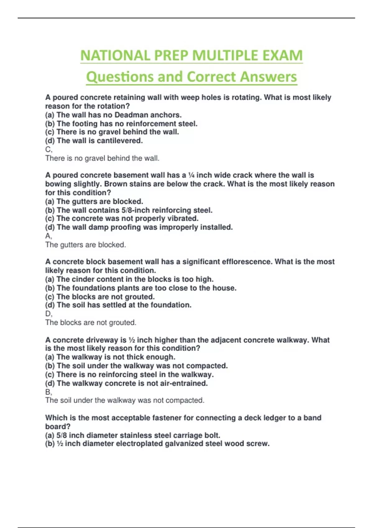 national prep multiple exam questions and correct