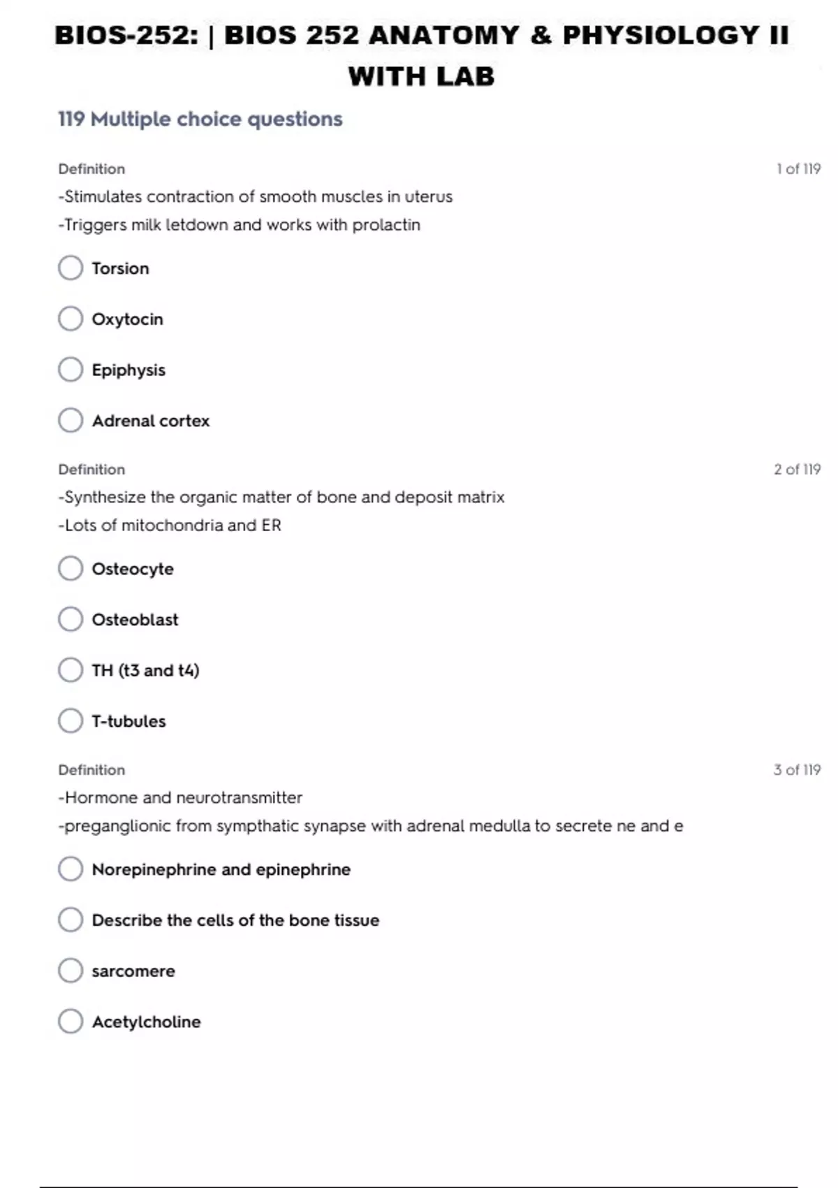 COMPLETE BUNDLE PACK FOR BIOS 252 ANATOMY & PHYSIOLOGY II WITH LAB EXAMS| GRADED A+