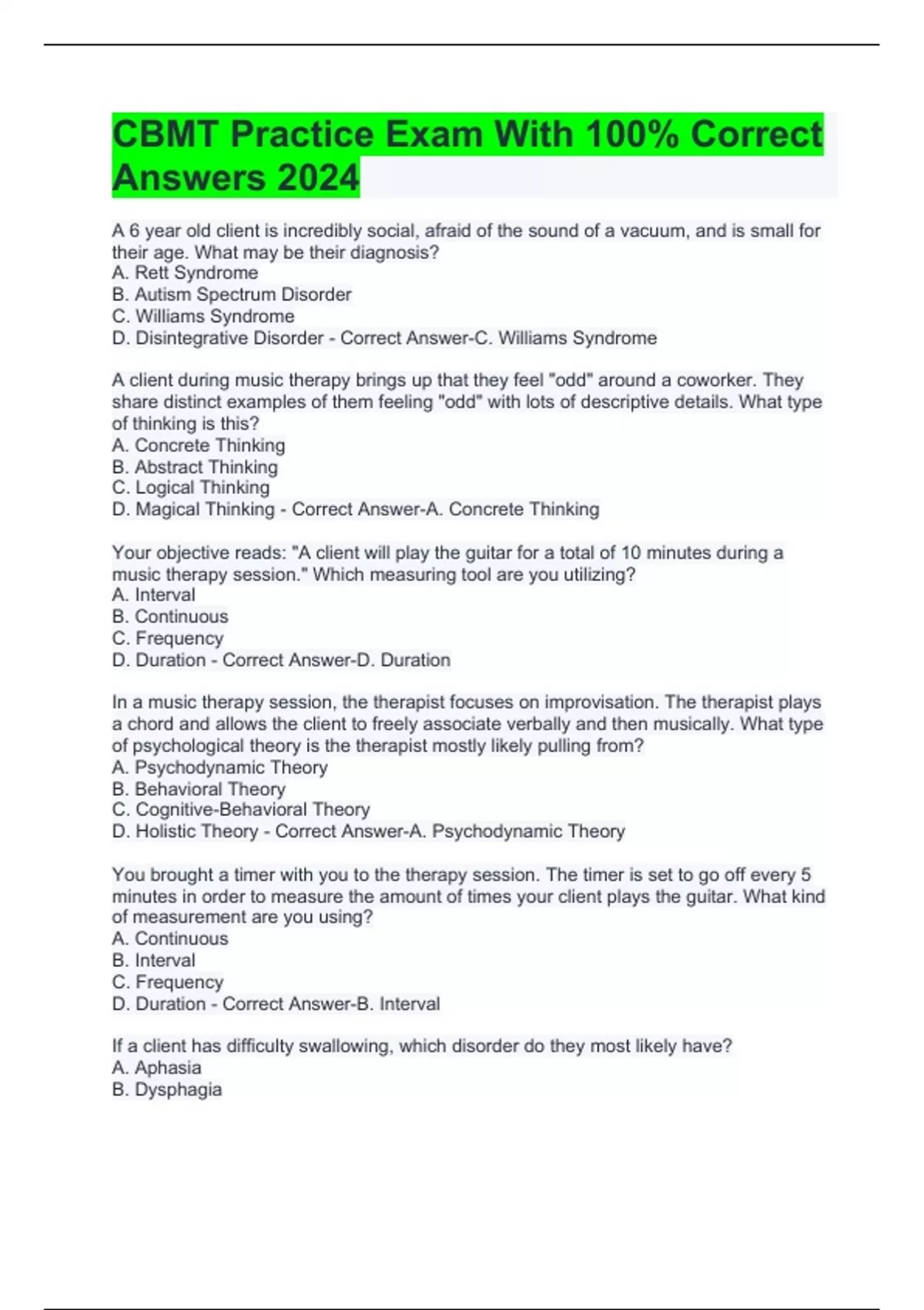 cbmt practice exam with 100 correct answers 2024