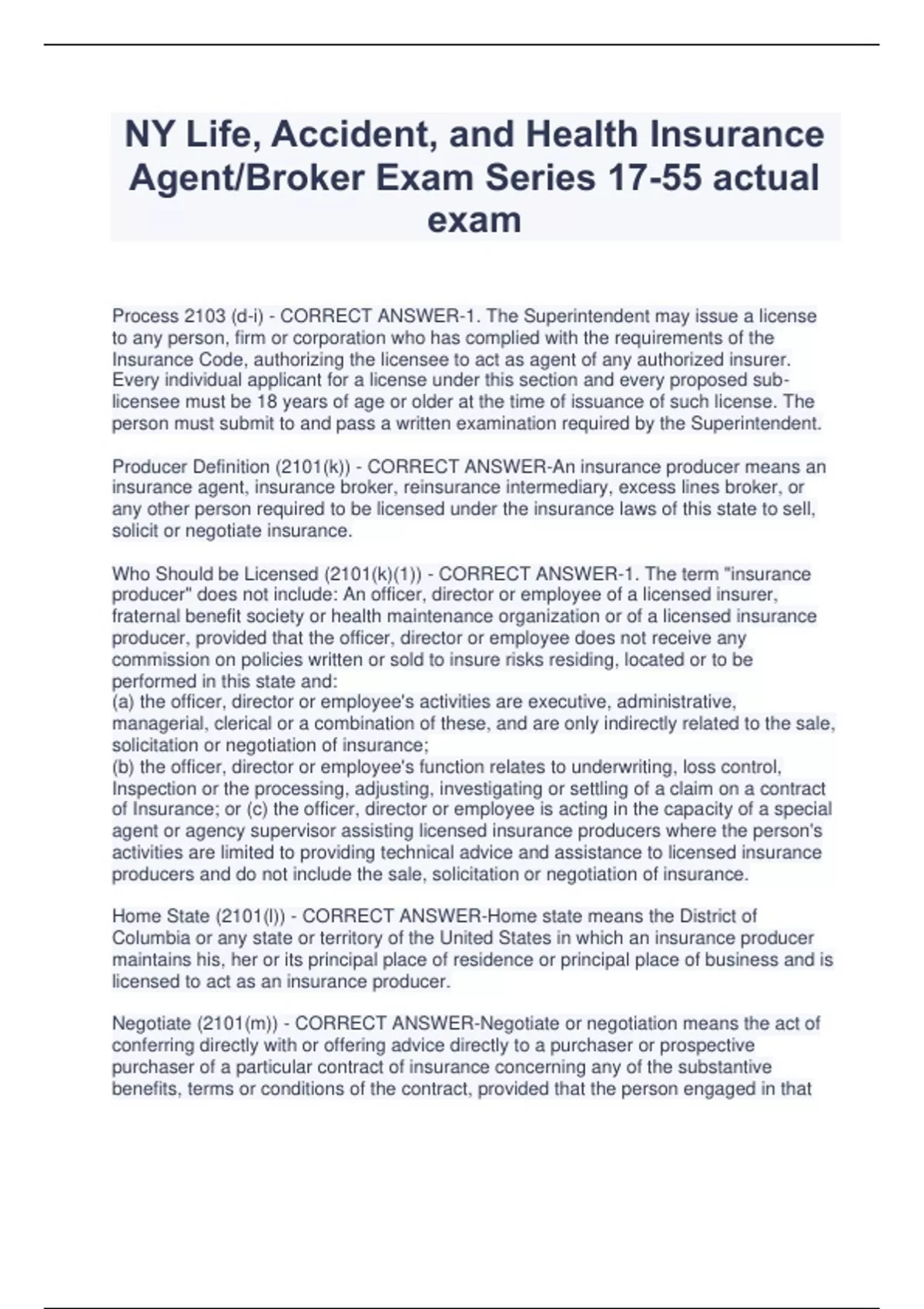 NY Life, Accident, and Health Insurance Agent/Broker Exam Series 17-55 actual exam