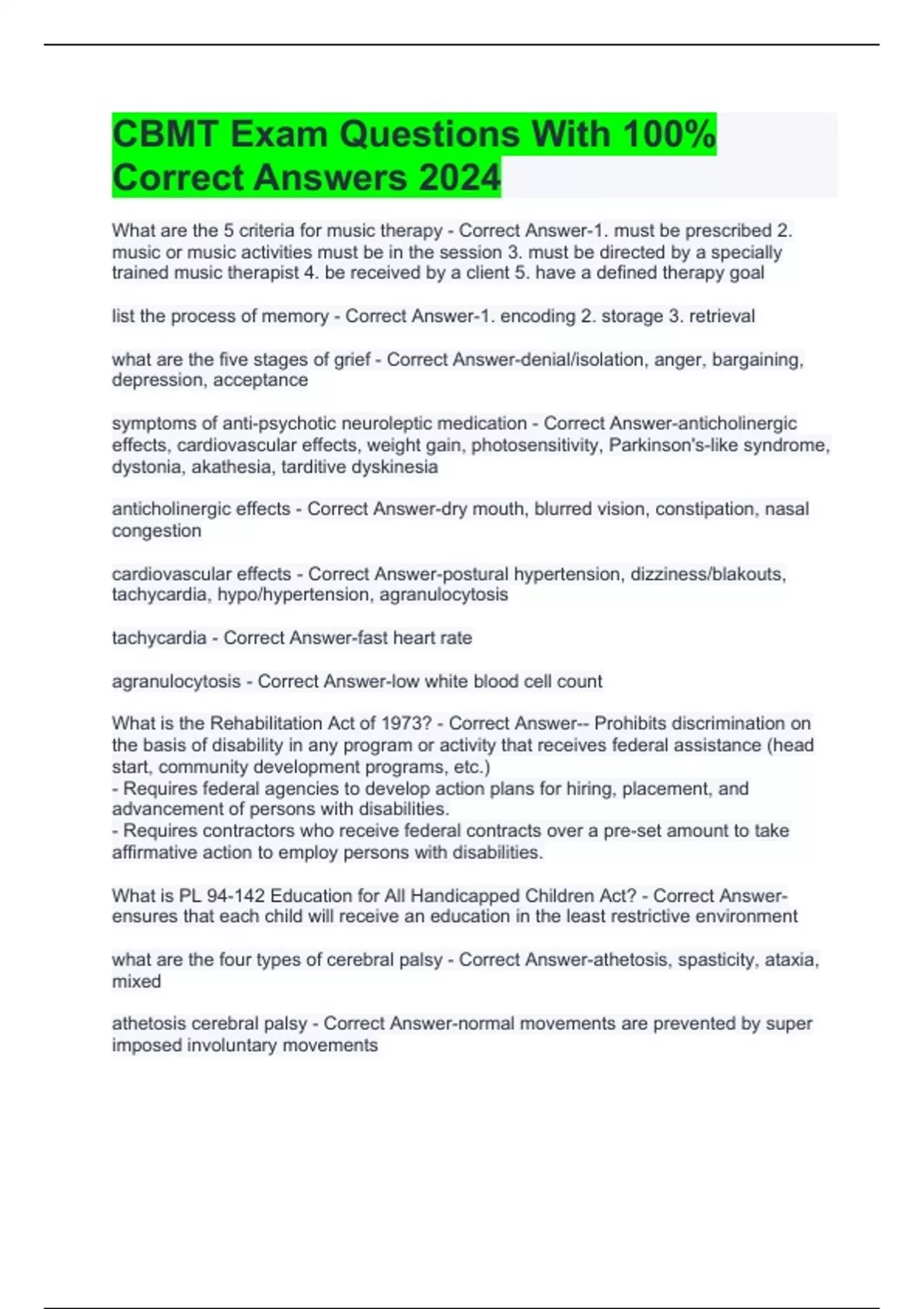 CBMT Exam Questions With 100% Correct Answers 2024