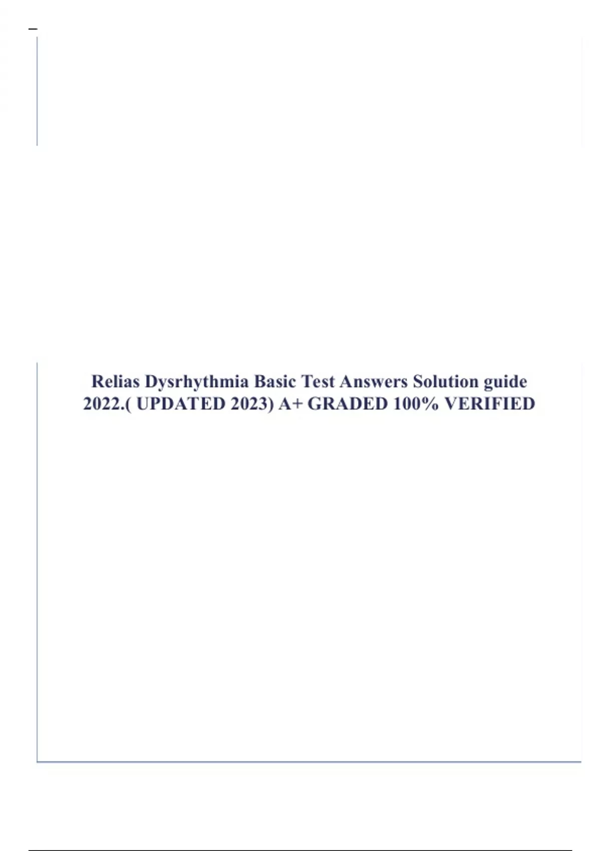 Relias Dysrhythmia Basic Test Answers Solution guide 2022.( UPDATED 2023) A+ GRADED 100% VERIFIED