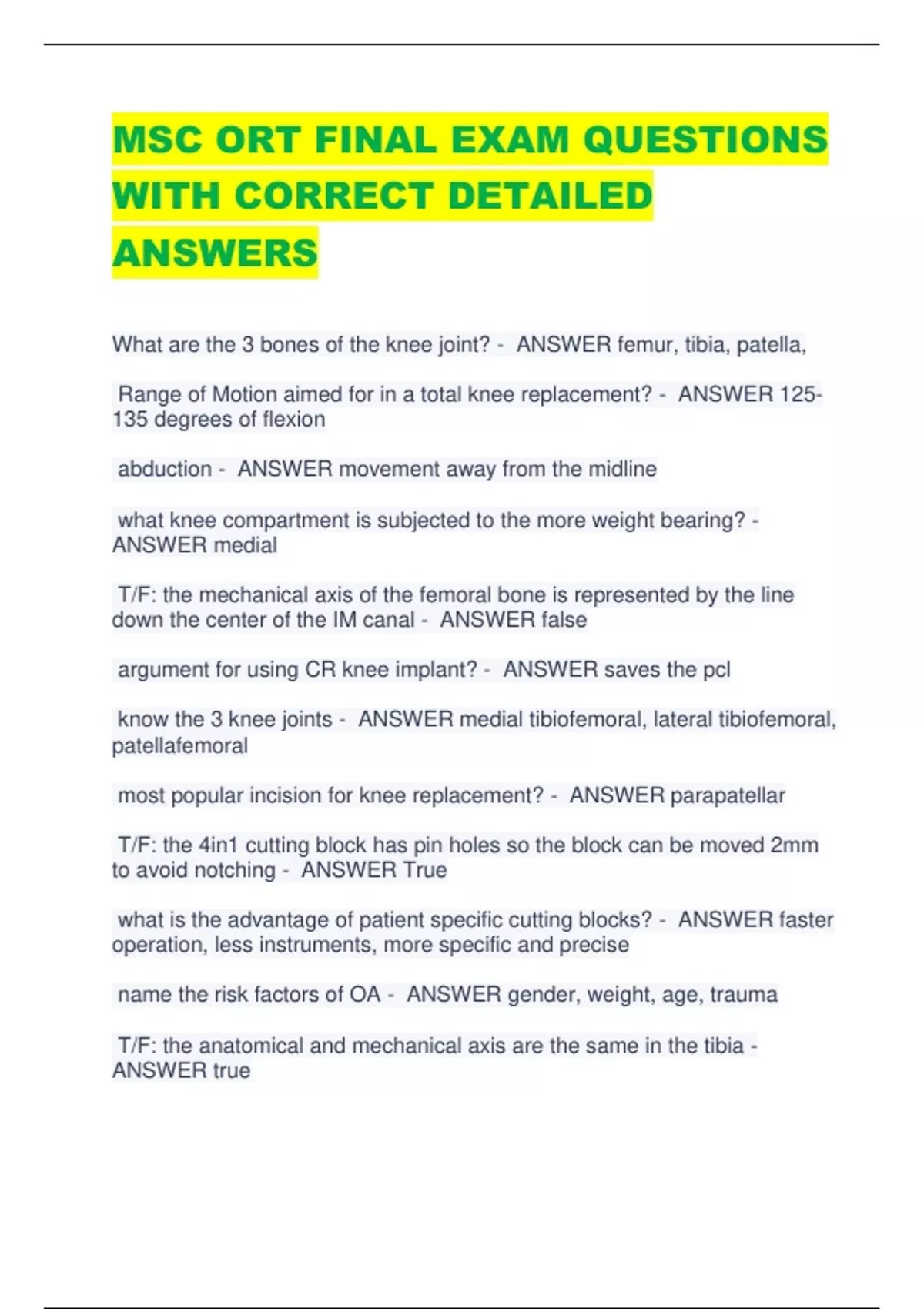 MSC ORT FINAL EXAM QUESTIONS WITH CORRECT DETAILED ANSWERS