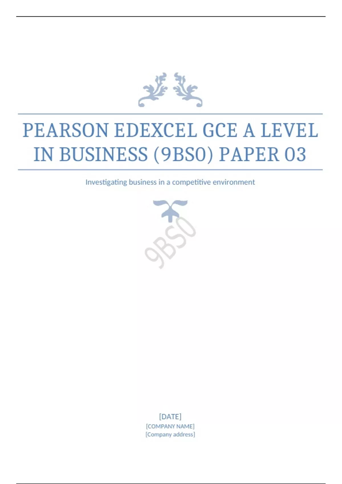 PEARSON EDEXCEL GCE A LEVEL IN BUSINESS (9BS0) PAPER 03