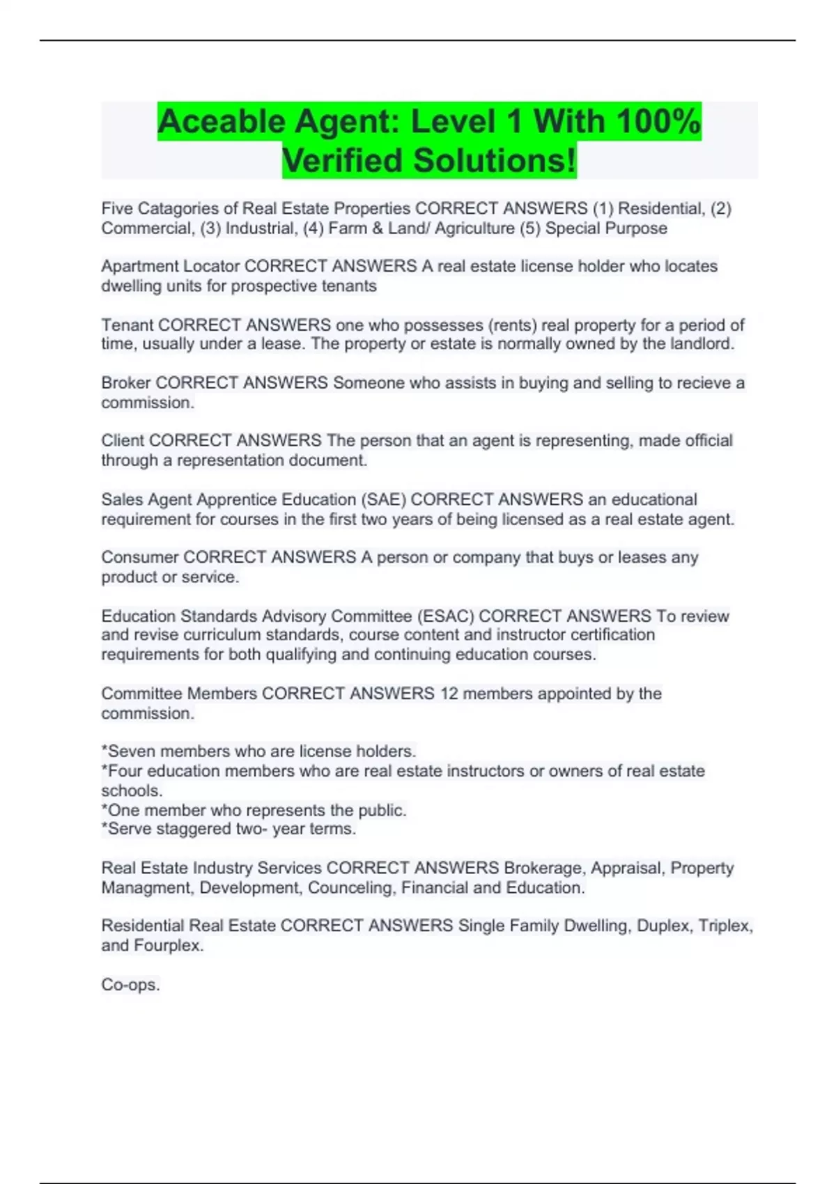 Aceable Agent: Level 1 With 100% Verified Solutions!