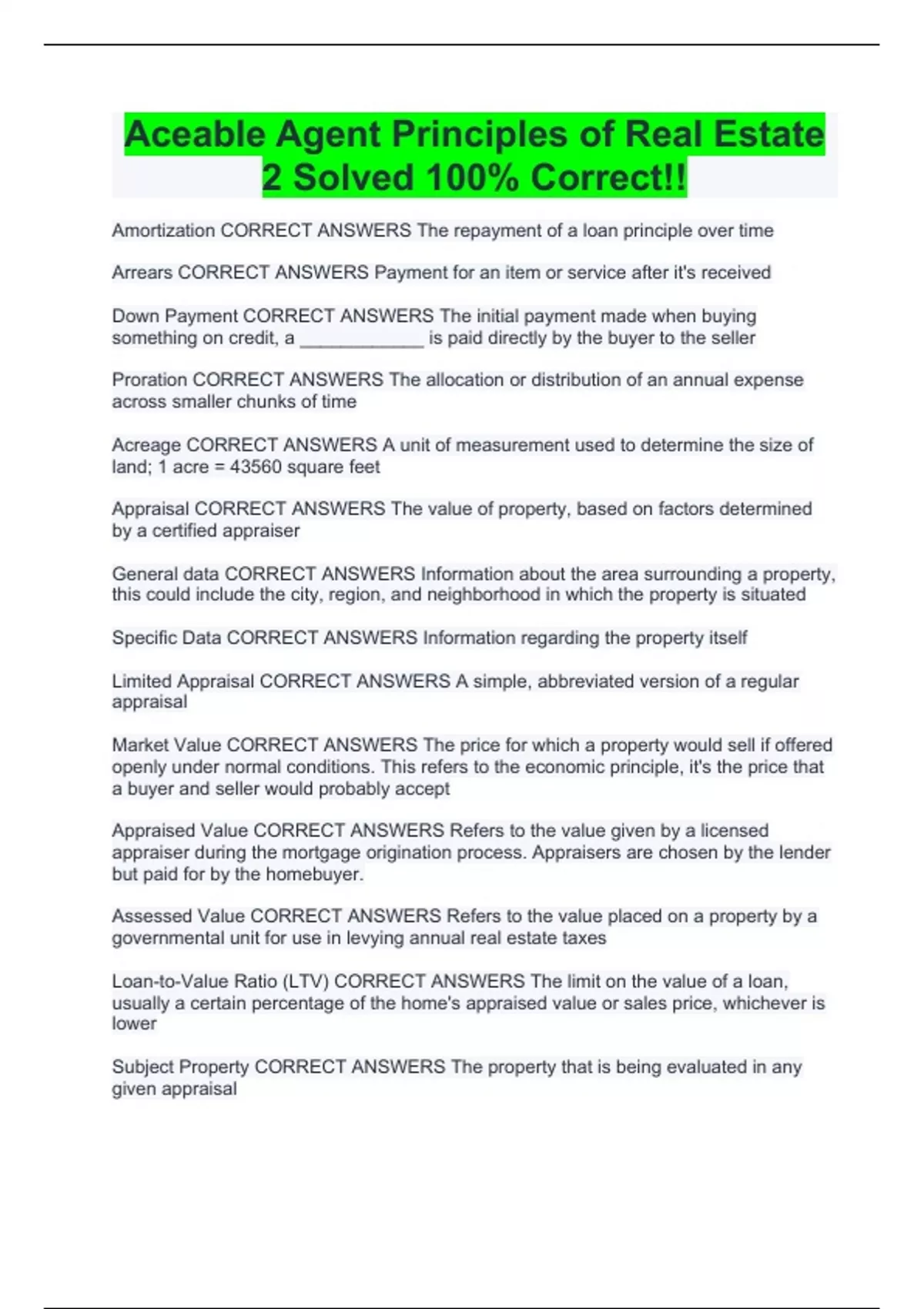 Aceable Agent Principles of Real Estate 2 Solved 100% Correct!!