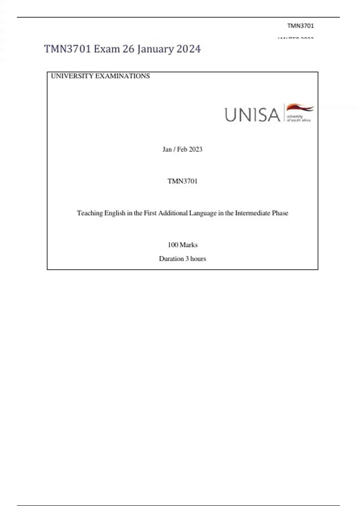 tmn3701 exam 26 january 2024