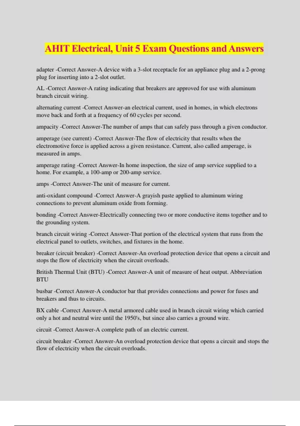 AHIT Electrical, Unit 5 Exam Questions and Answers