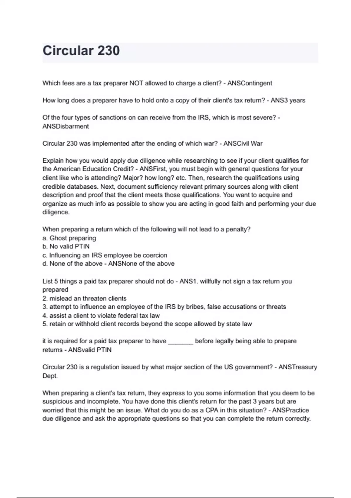 Circular 230 is a regulation issued by what major section of the US government? - ANSTreasury