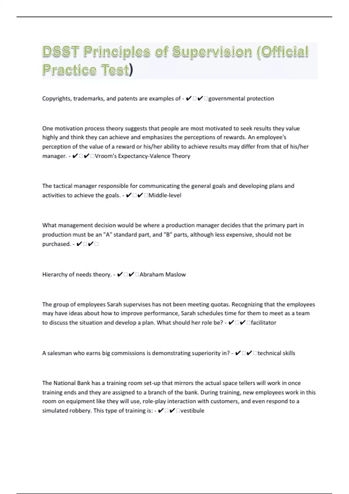 DSST Principles of Supervision 100 Official Practice Test And Answers