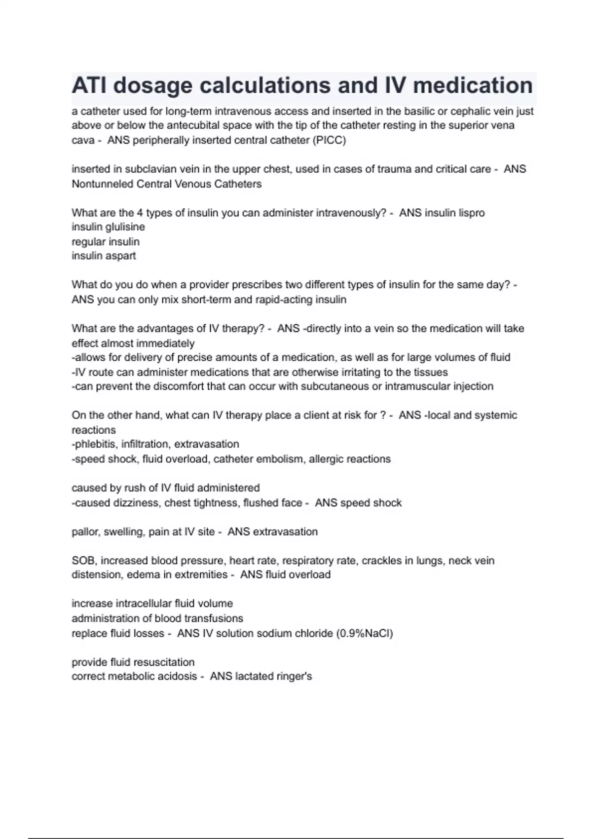 ATI dosage calculations and IV medication Exam Questions with correct Answers 2024( A+ GRADED 100% VERIFIED).