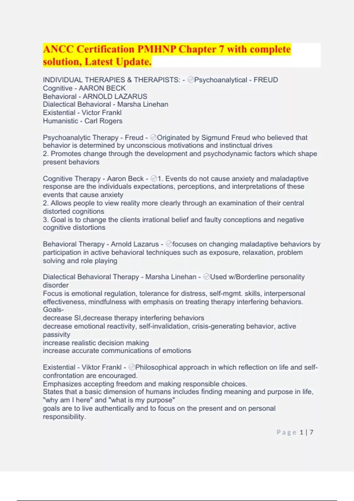 ANCC Certification PMHNP Chapter 7 with complete solution, Latest Update.