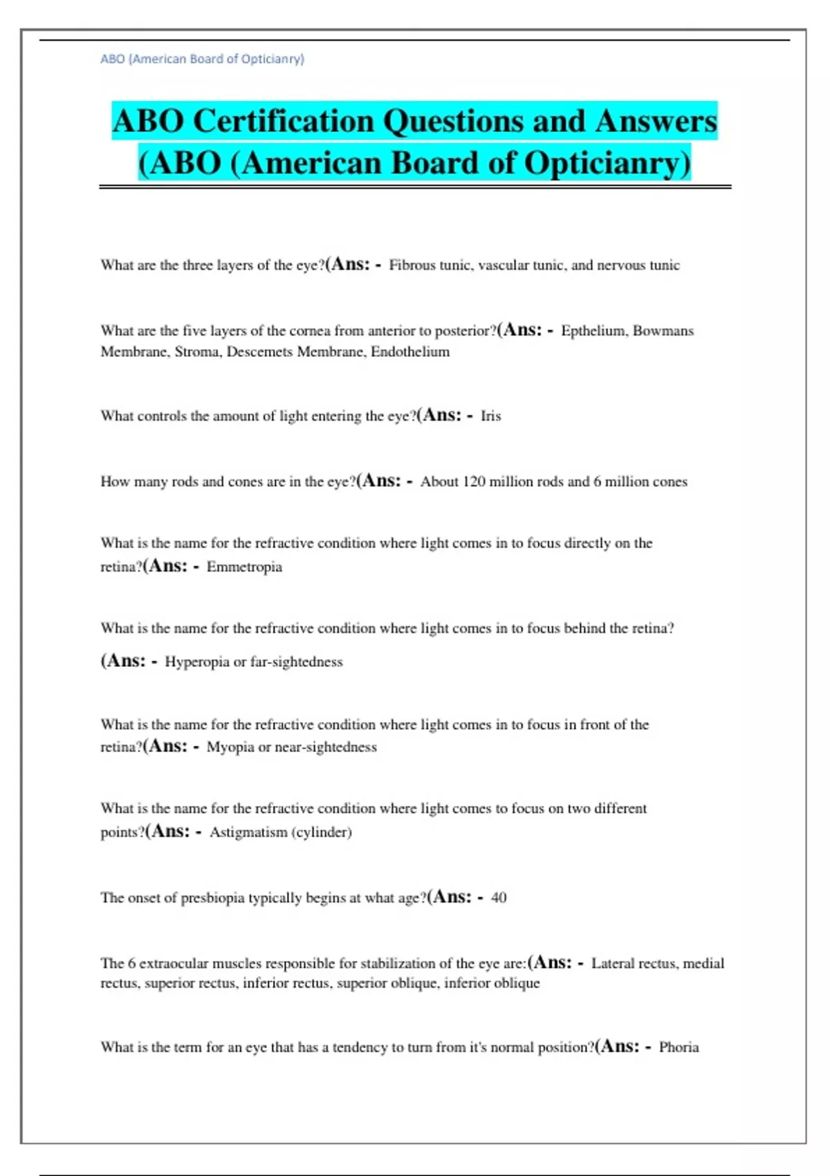 ABO Certification Questions and Answers (ABO (American Board of Opticianry)