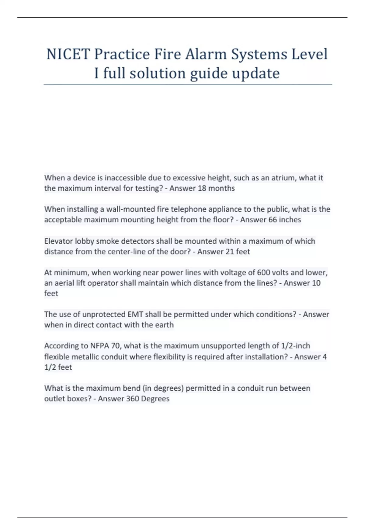 NICET Practice Fire Alarm Systems Level I full solution guide update