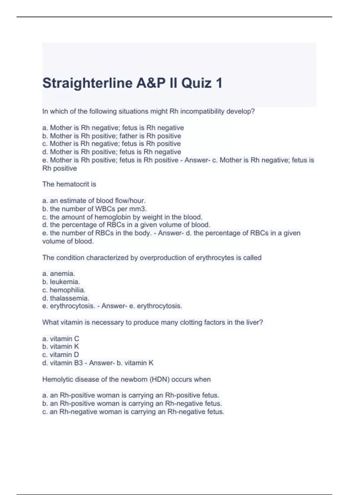 Straighterline A&P II Quiz 1 -solved