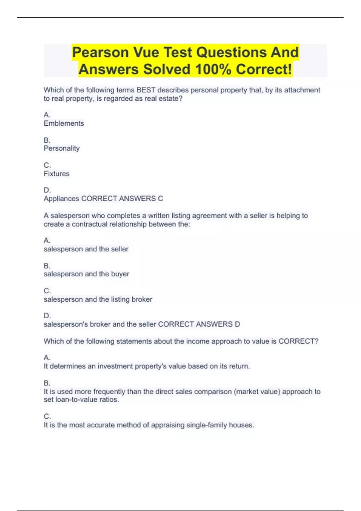 Pearson Vue Test Questions And Answers Solved