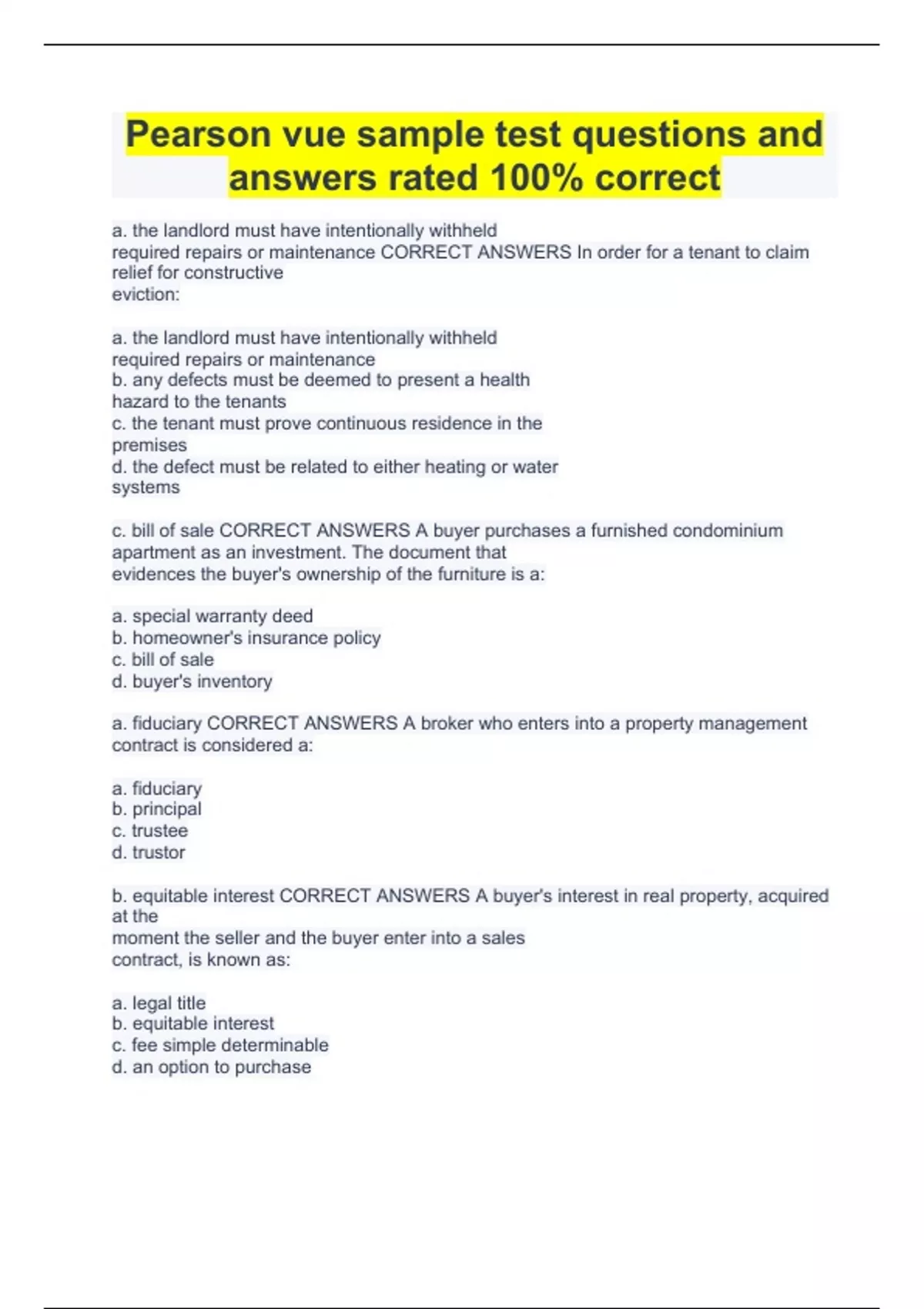 Pearson vue sample test questions and answers