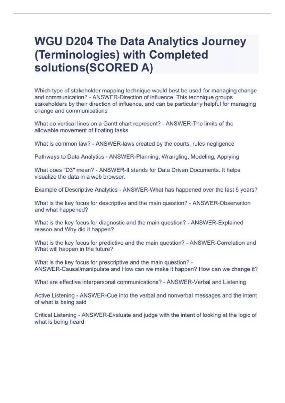 WGU D204 The Data Analytics Journey (Terminologies) with Completed solutions(SCORED A)