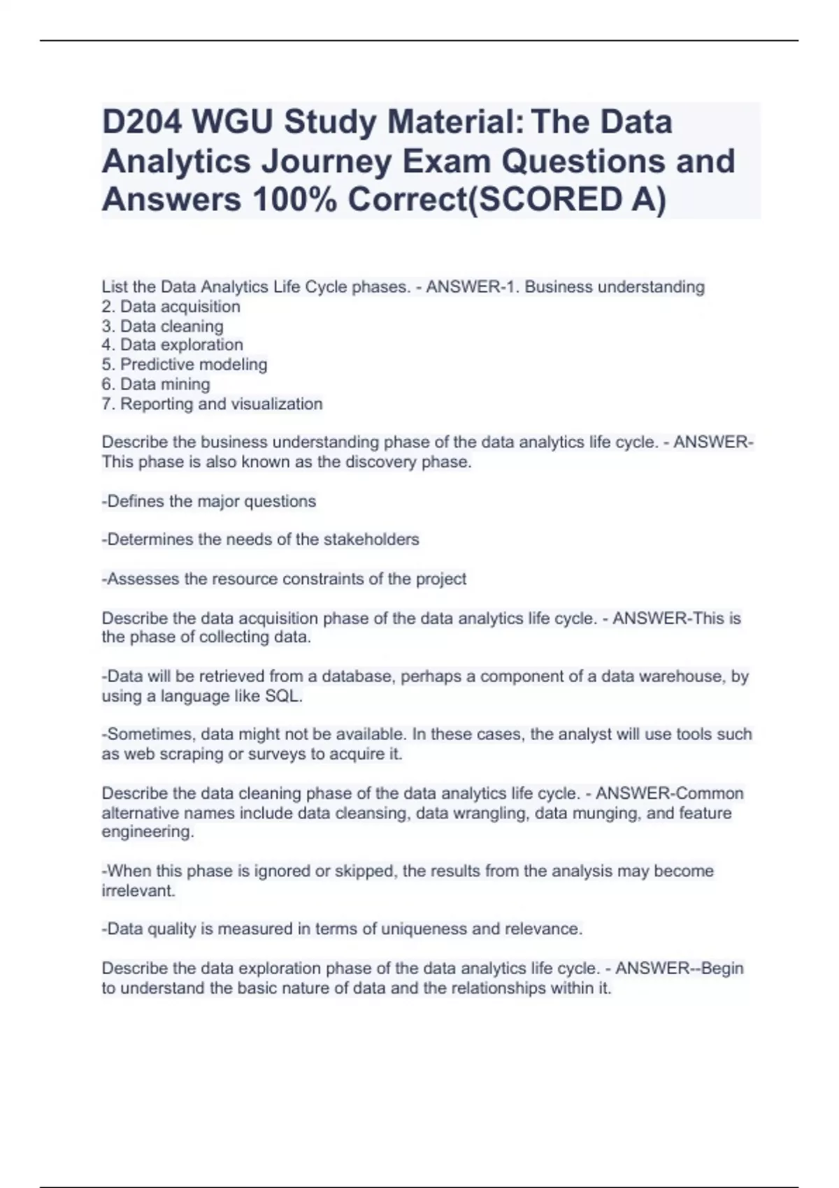 D204 WGU Study Material: The Data Analytics Journey Exam Questions and Answers 100% Correct(SCORED A)