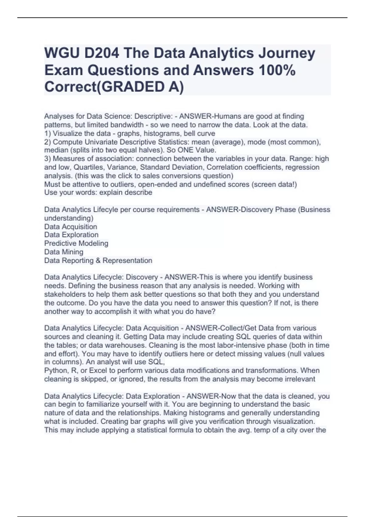 WGU D204 The Data Analytics Journey Exam Questions and Answers 100% Correct(GRADED A)