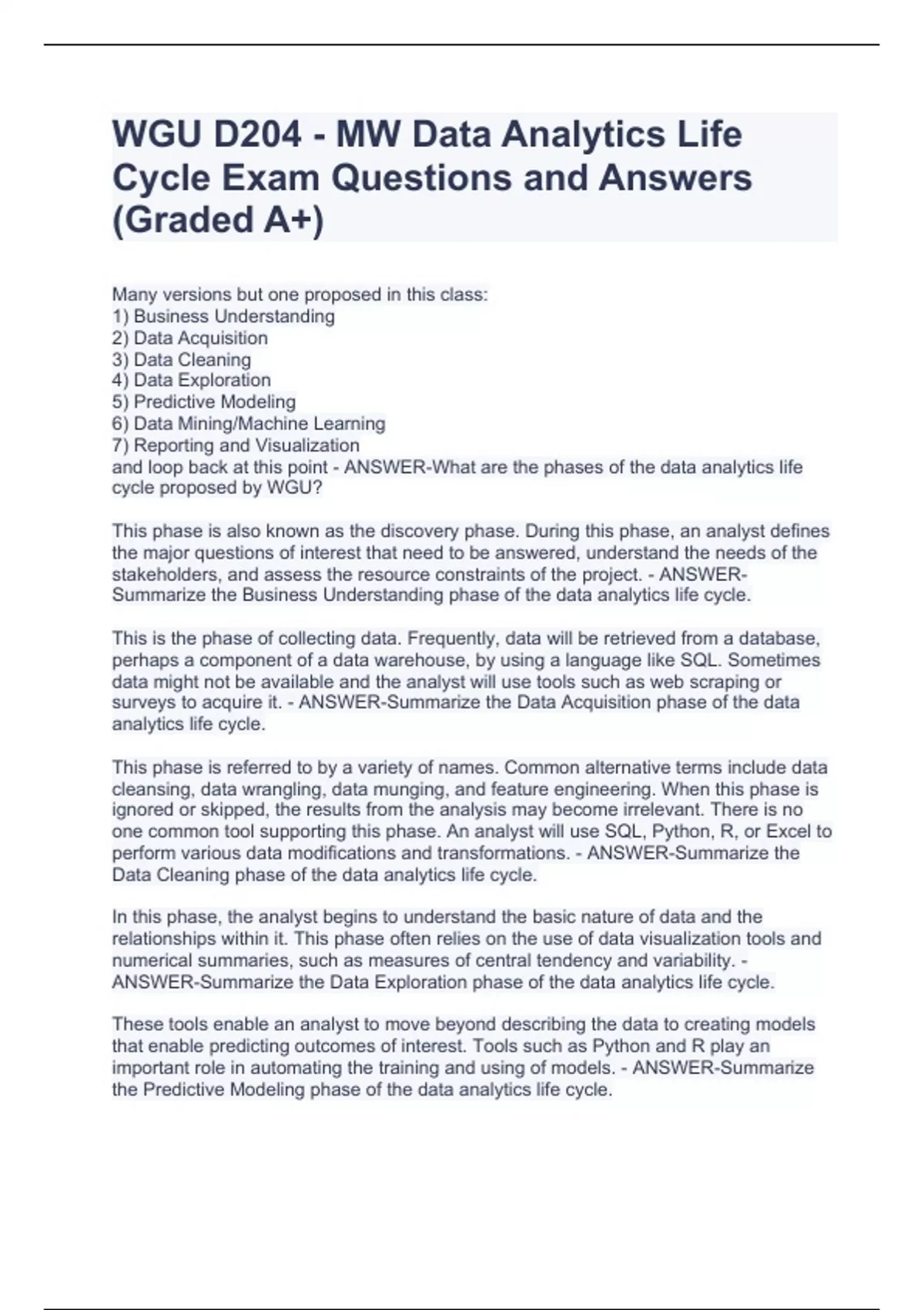 WGU D204 - MW Data Analytics Life Cycle Exam Questions and Answers (Graded A+)WGU D204 - MW Data Analytics Life Cycle Exam Questions and Answers (Graded A+)WGU D204 - MW Data Analytics Life Cycle Exam Questions and Answers (Graded A+)WGU D204 - MW Data Analytics Life Cycle Exam Questions and Answers (Graded A+)WGU D204 - MW Data Analytics Life Cycle Exam Questions and Answers (Graded A+)WGU D204 - MW Data Analytics Life Cycle Exam Questions and Answers (Graded A+)WGU D204 - MW Data Analytics Life Cycle Exam Questions and Answers (Graded A+)