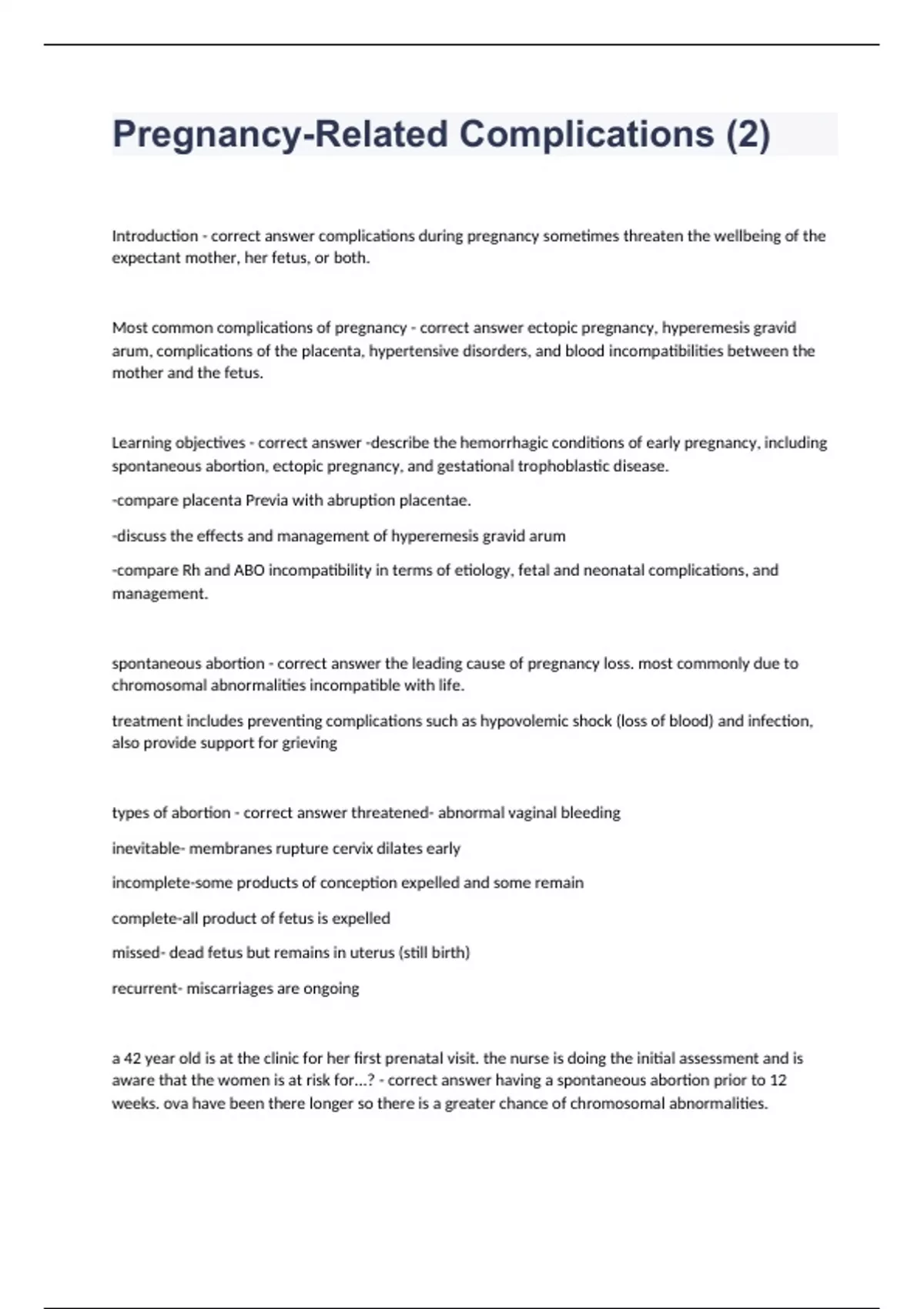 Pregnancy-Related Complications (2) questions and answers already solved 2024