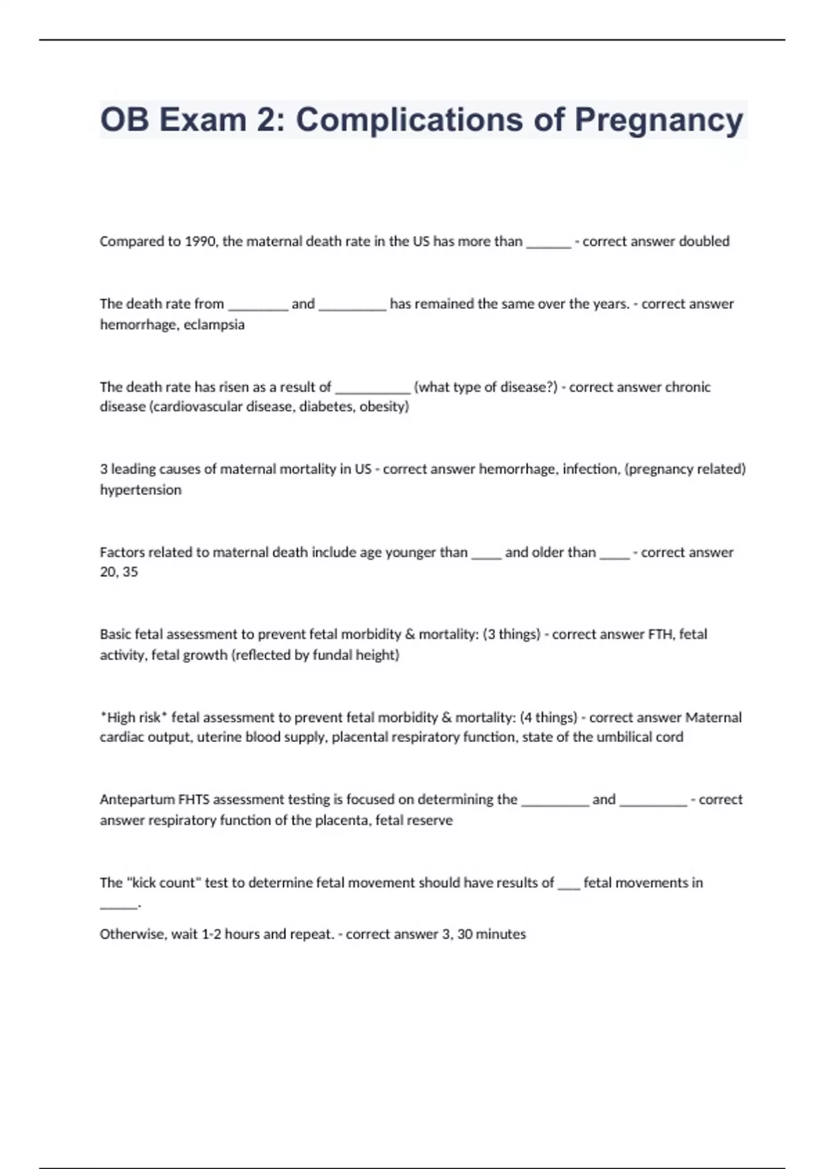 OB Exam 2 Complications of Pregnancy. questions and answers already solved 2024